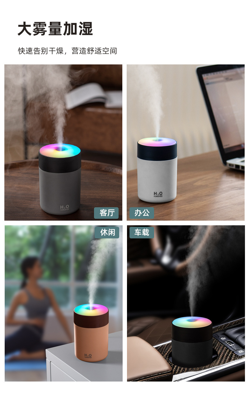 炫彩杯加湿器七彩车载静音加湿器卧室家用小型迷你香薰机新款跨境