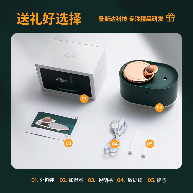 新款旋转星球加湿器喷雾加湿器usb充电家用补水迷你加湿器小夜灯