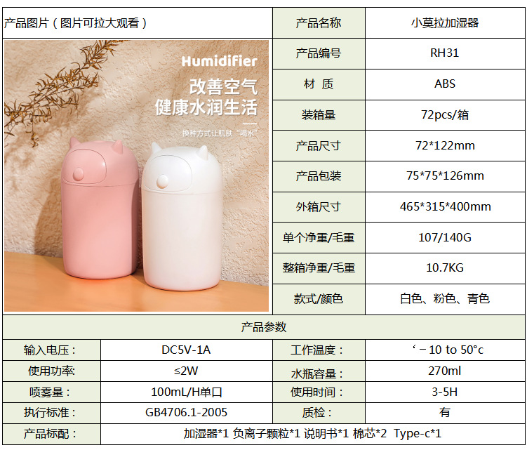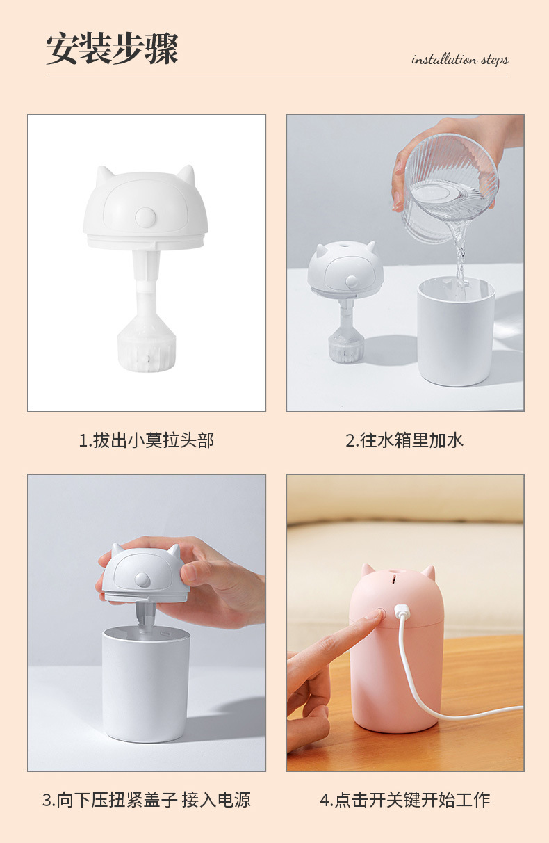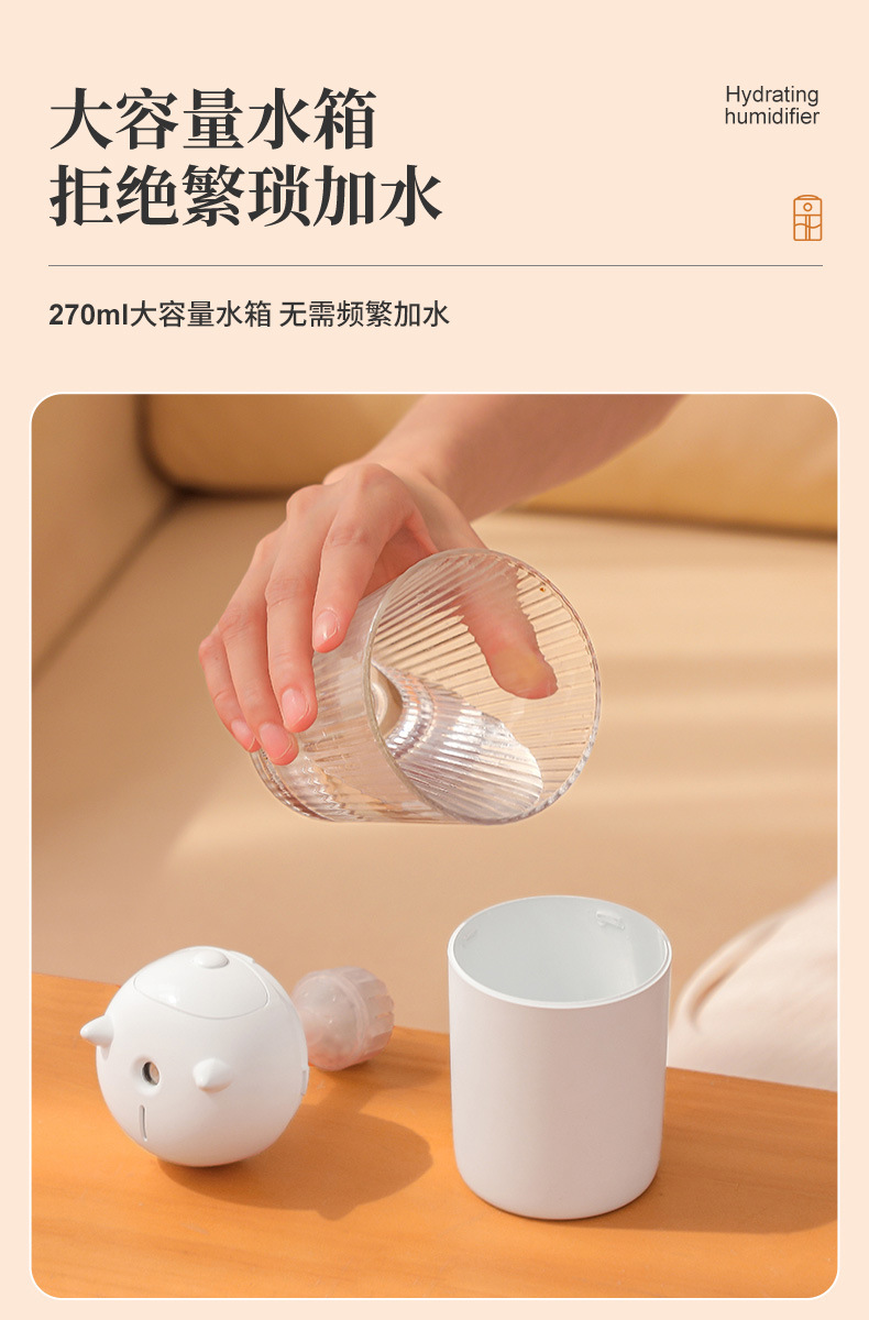 跨境新款可爱小型加湿器家用办公室桌面卧室静音迷你大喷雾加湿器