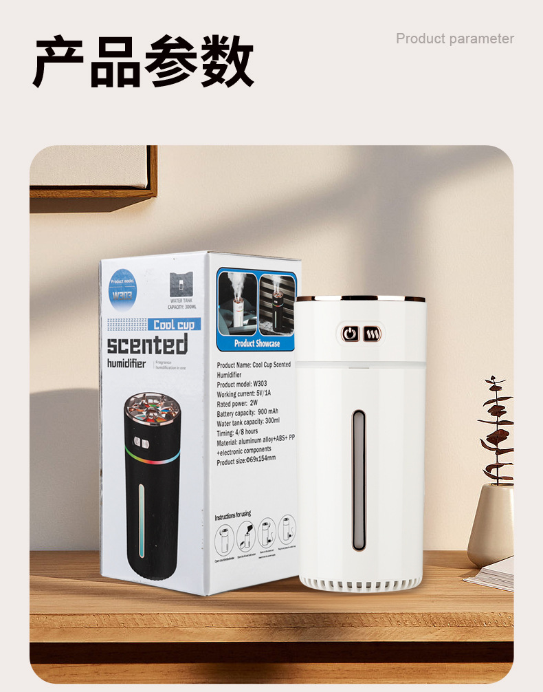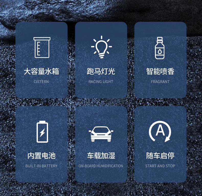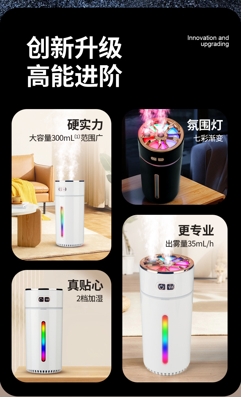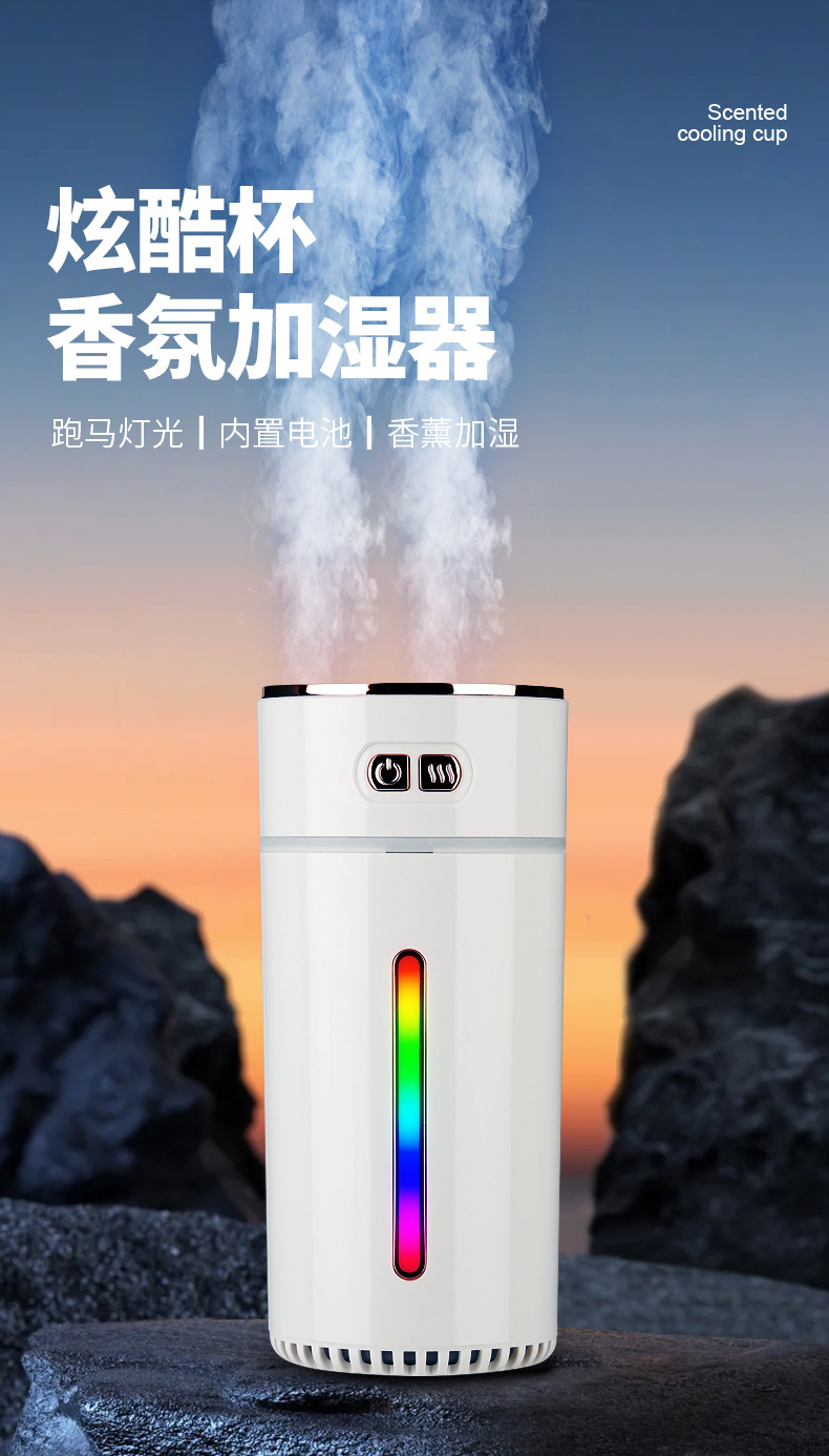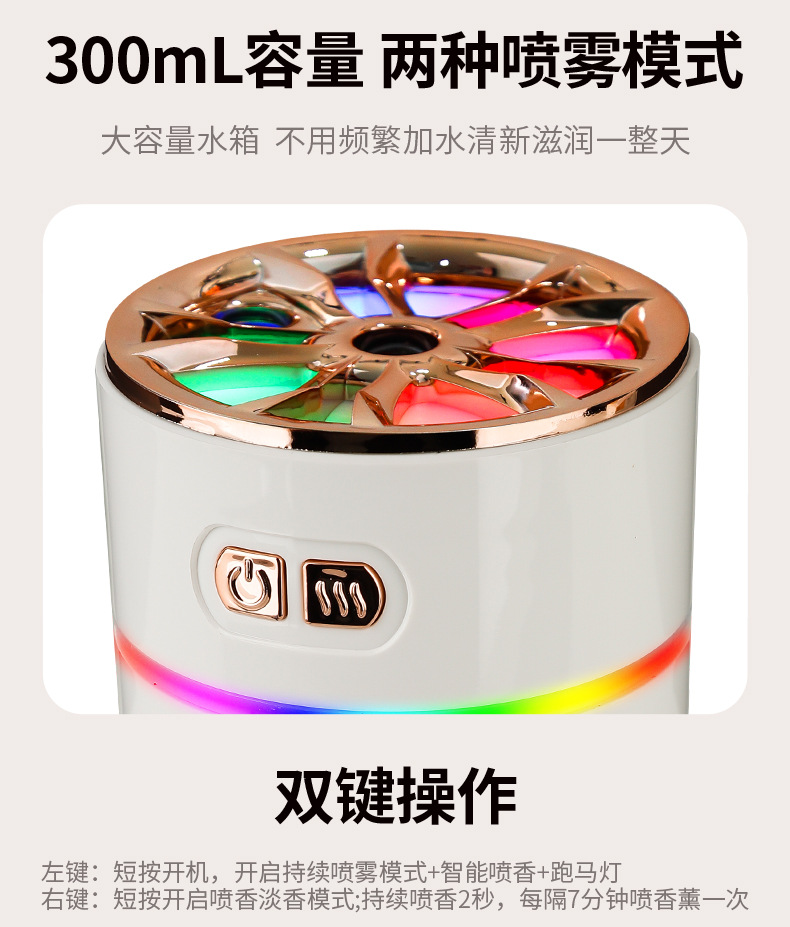 跨境新款七彩香氛车载加湿器 迷你充电喷雾炫彩大雾量车载香熏机