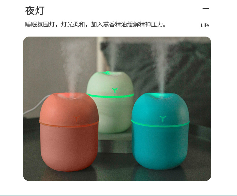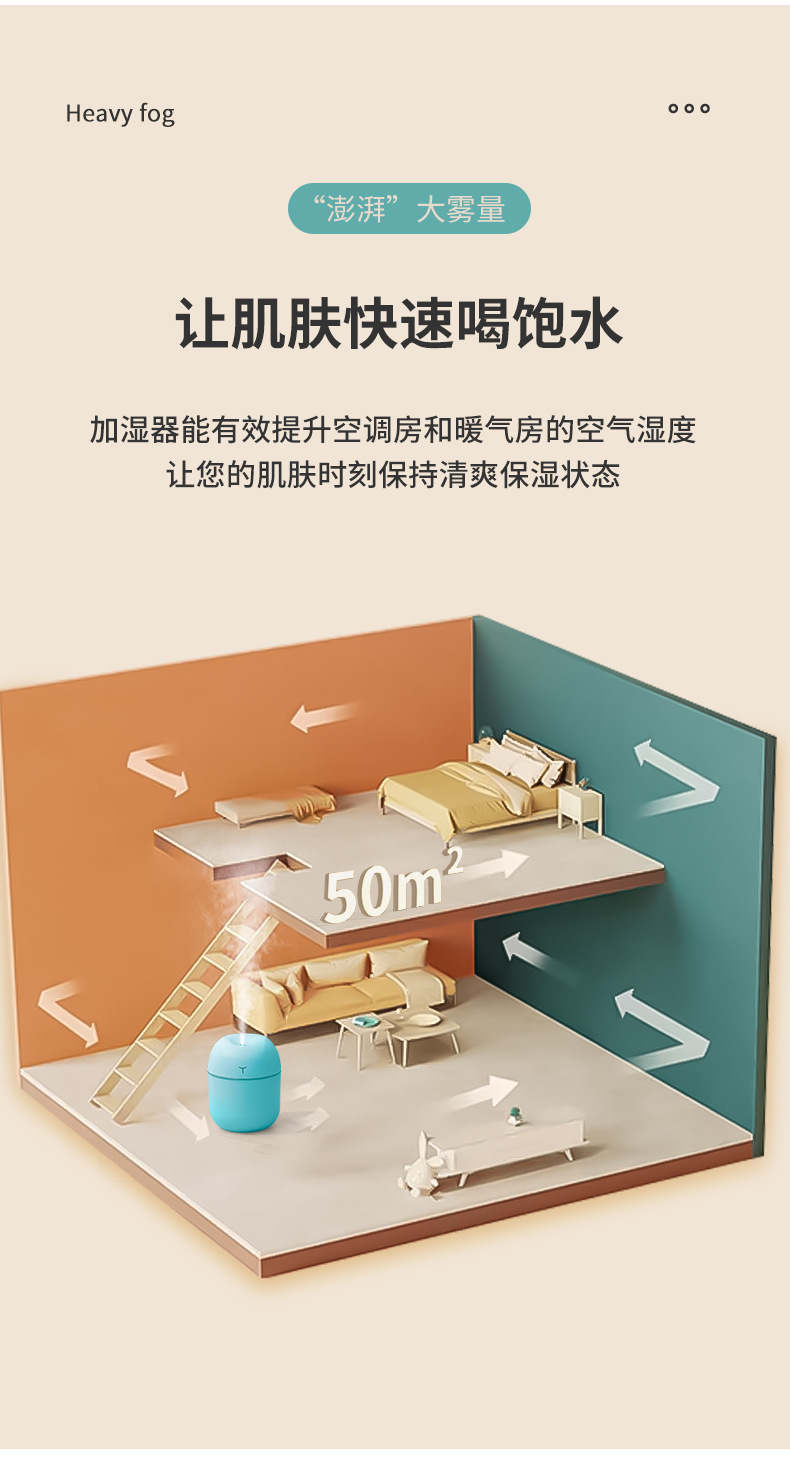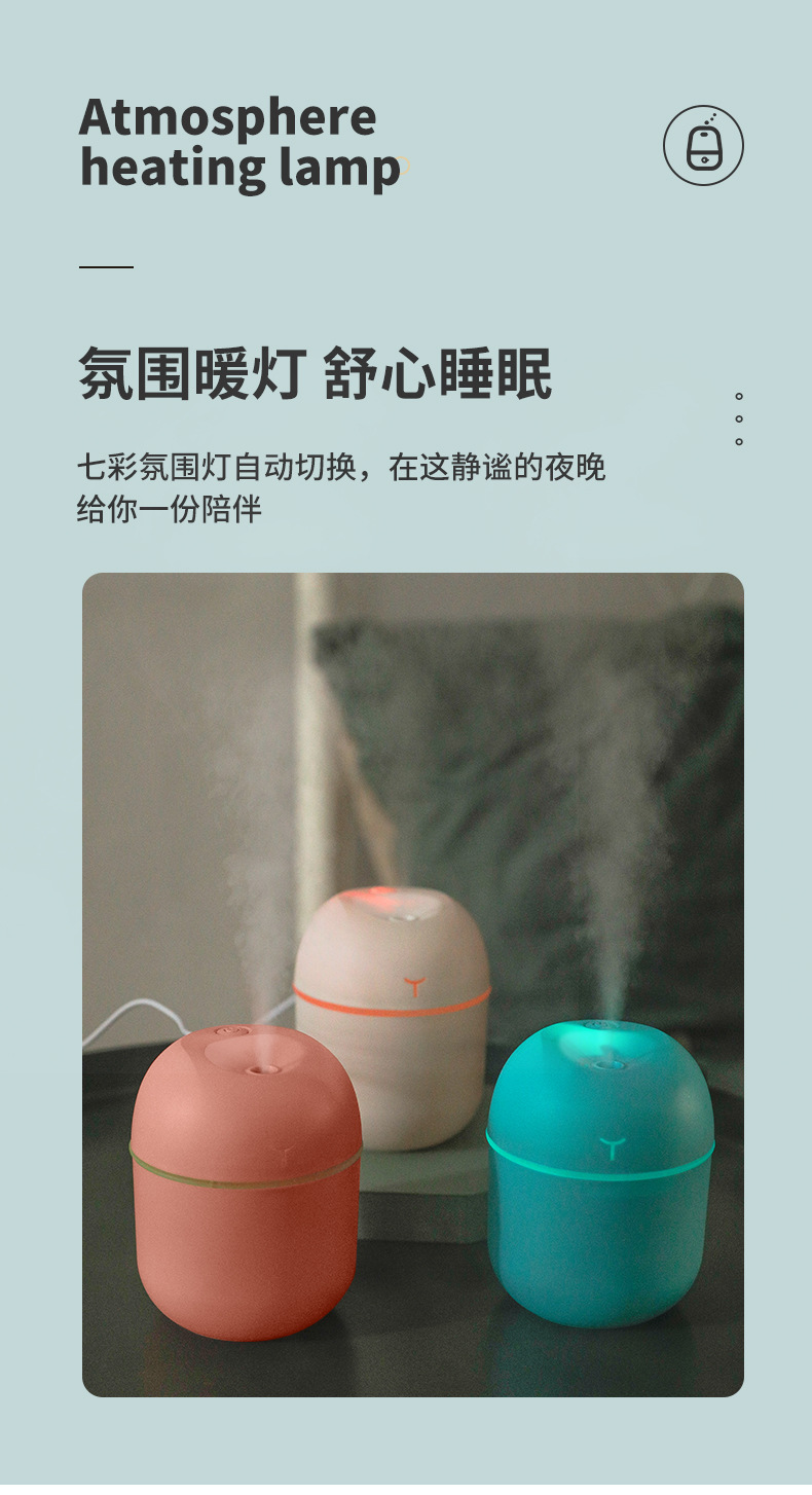 跨境新款USB加湿器 迷你便携车载大雾量家用桌面静音氛围灯加湿器