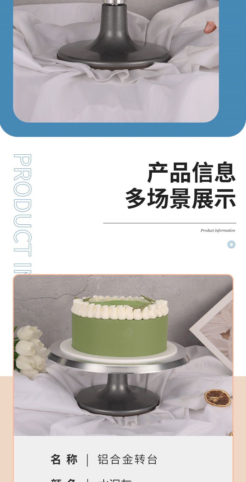 10/12寸蛋糕转盘铝合金裱花台蛋糕旋转台裱花水泥灰工作台转盘