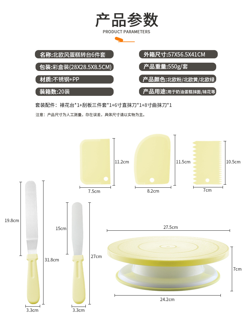 2023款 北欧风蛋糕转台6件套 奶油裱花转盘 烘焙DIY工具套装