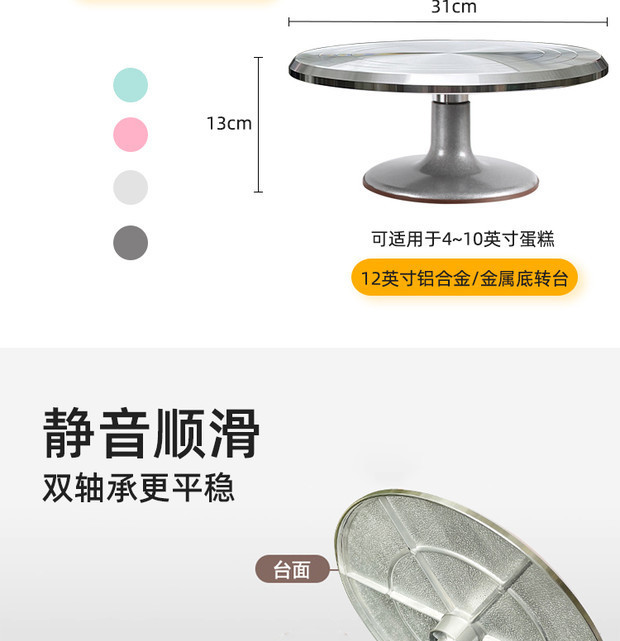 蛋糕转盘裱花台烘焙工具套装铝合金托台旋转抹面家用商用裱花转台