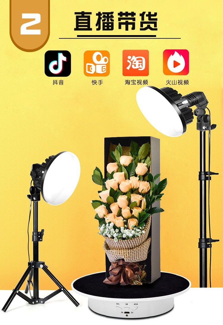 跨镜外贸充电转盘视频拍摄台直播动态旋转展示架电动旋转拍摄转盘