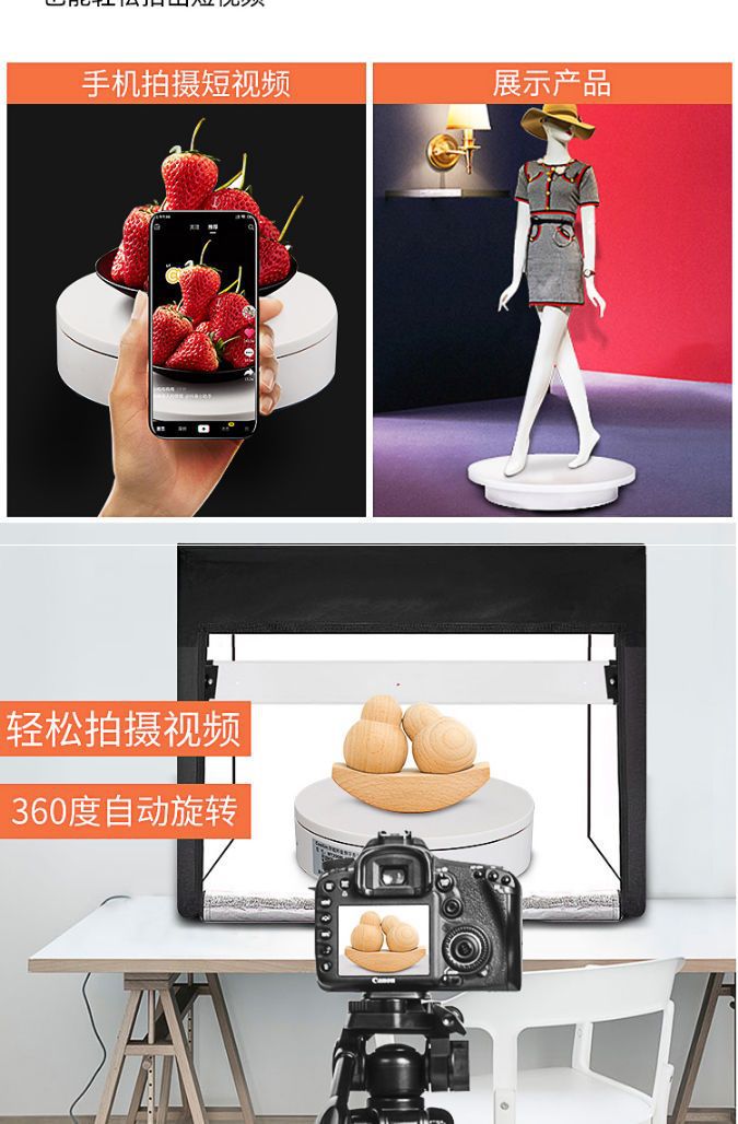 展示小转盘摄影电动转盘旋转台主图直播手办珠宝拍照台遥控调速