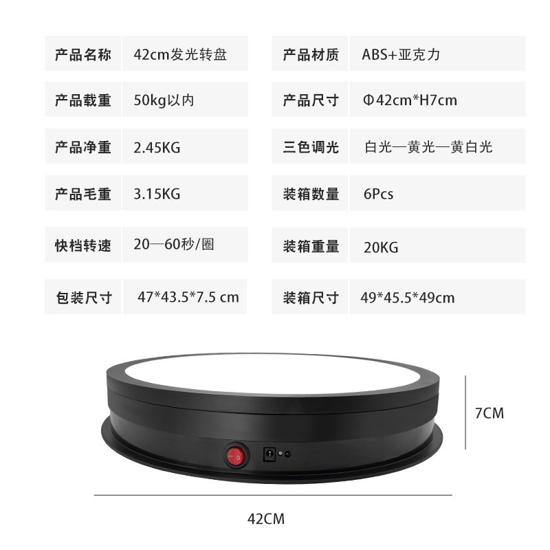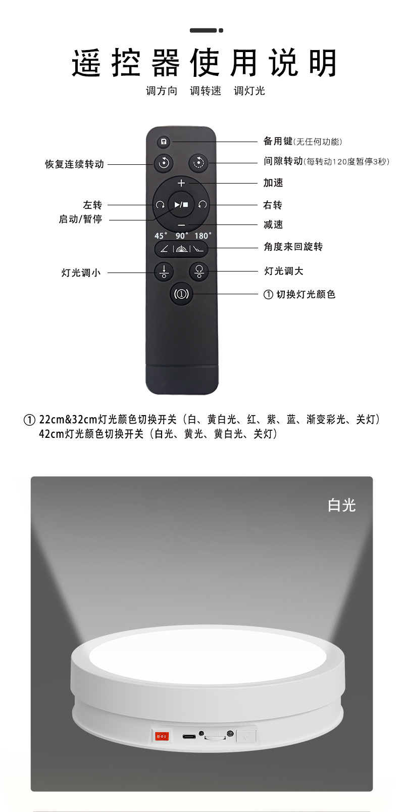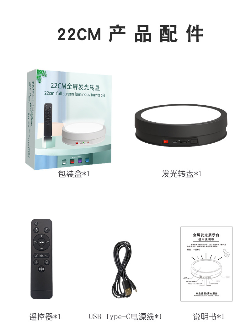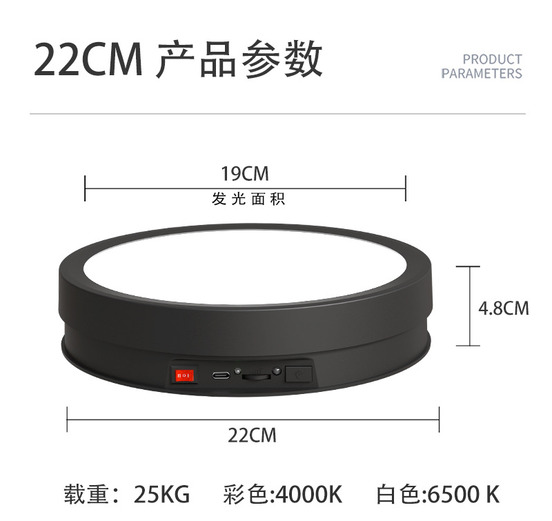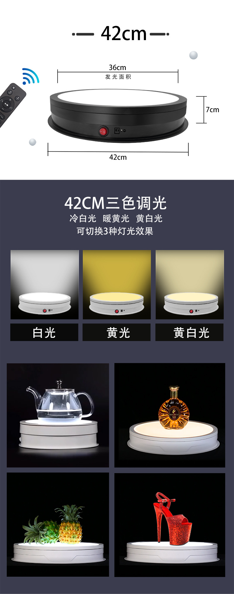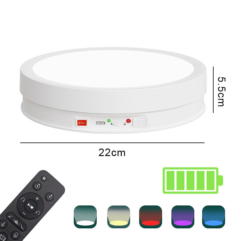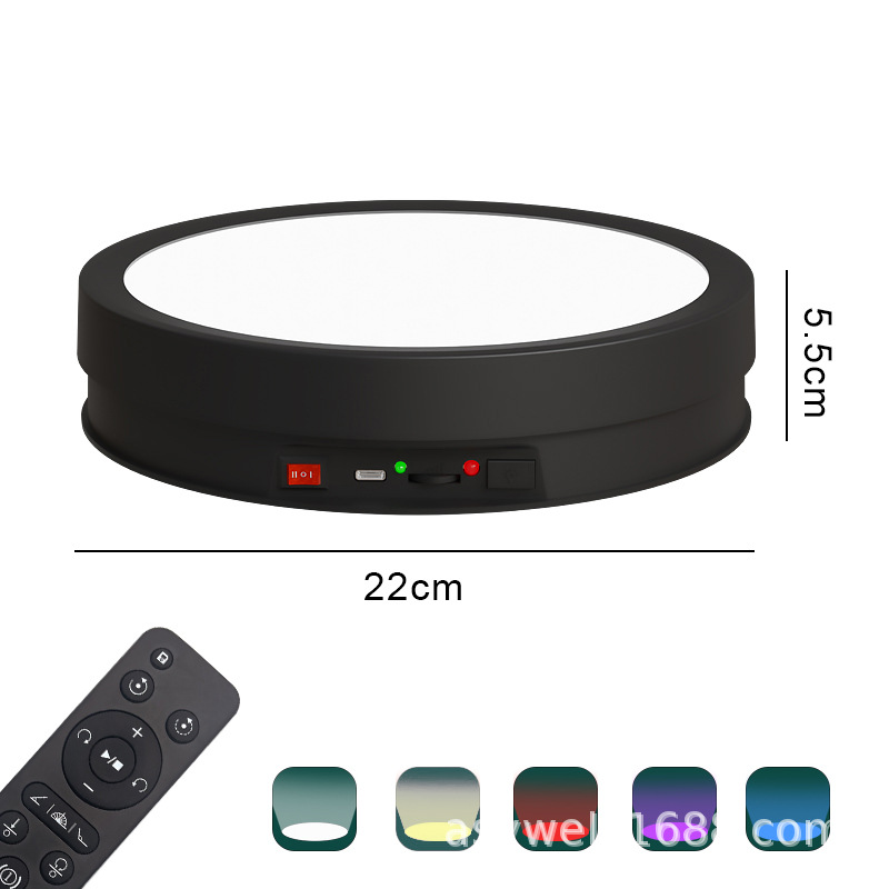 新款22CM遥控发光彩光多功能展示架自动转盘直播拍摄电动旋转台