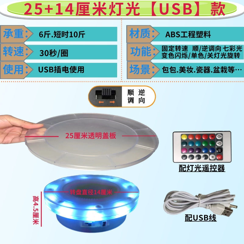 直播展示台旋转台电动转盘全自动旋转产品拍摄模型发光展示架简约