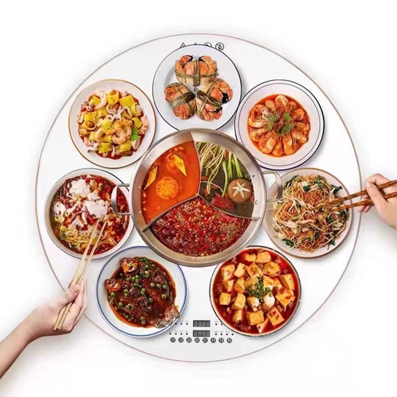 餐桌转盘家用带电磁炉火锅电动圆桌盘钢化旋转底座保温加热暖菜板