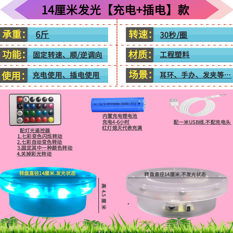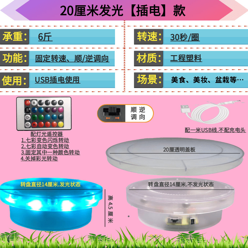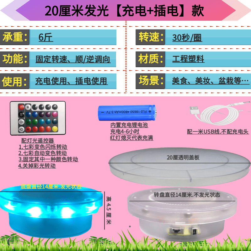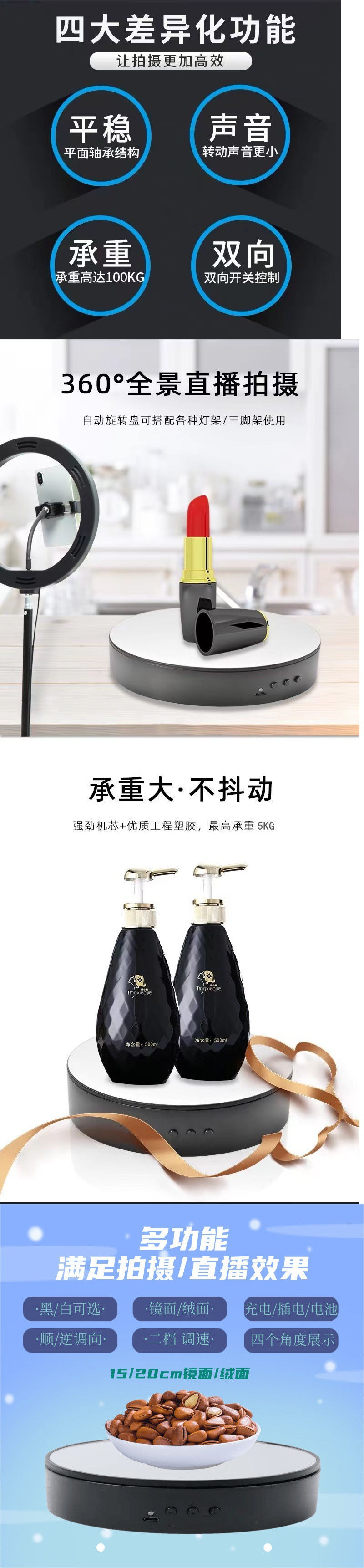 直播展示台旋转台电动转盘全自动旋转产品拍摄模型发光展示架简约