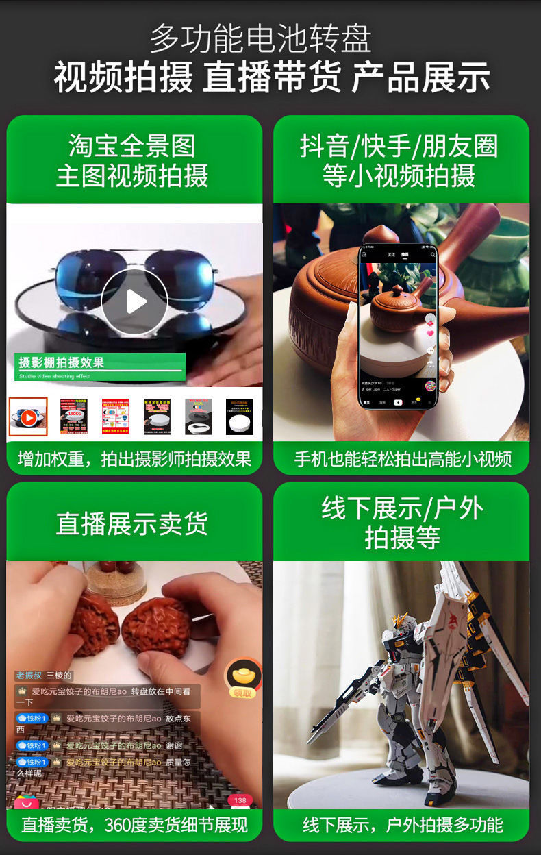 展示小转盘摄影电动转盘旋转台主图直播手办珠宝拍照台遥控调速