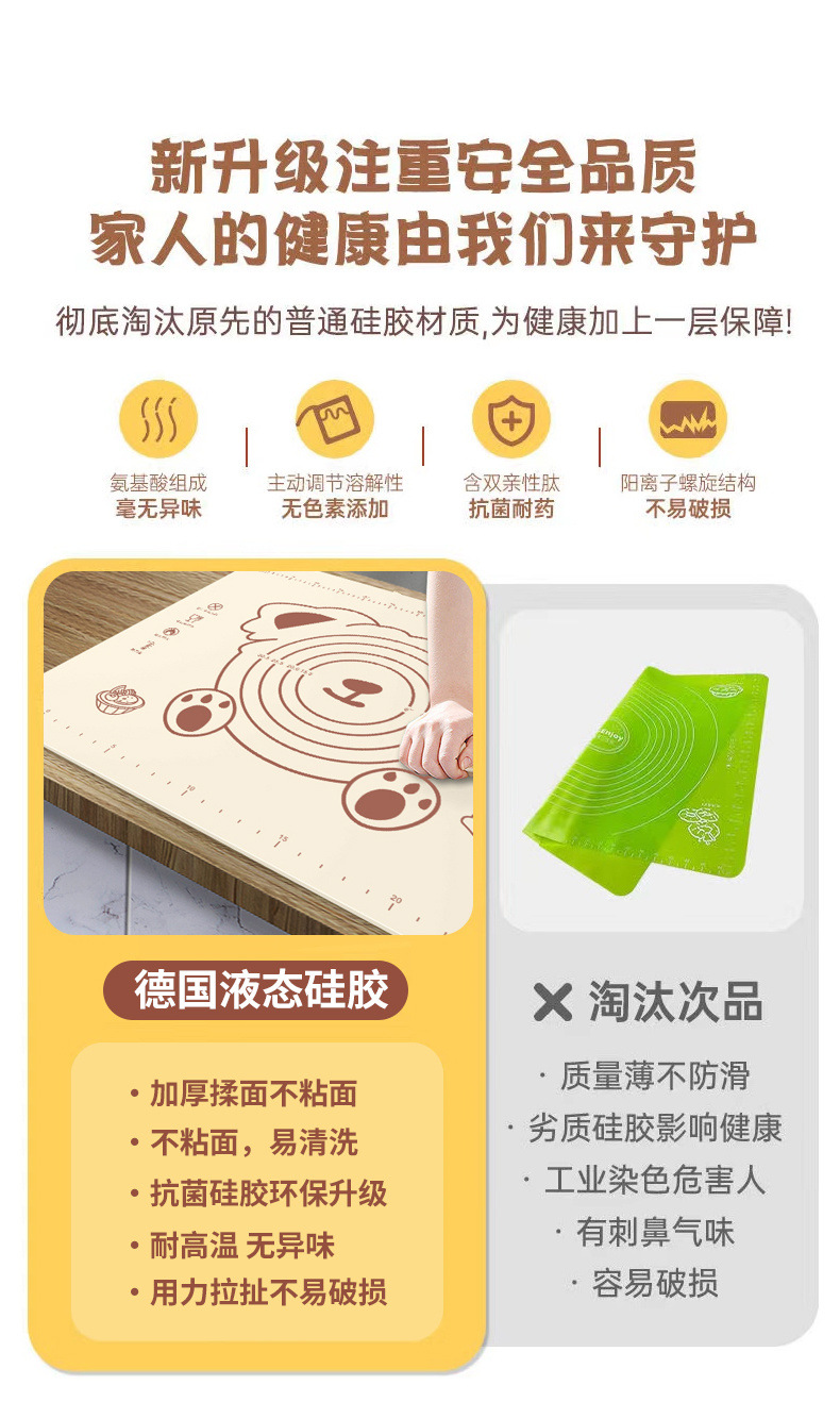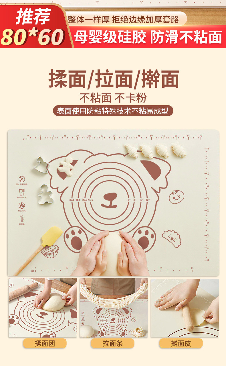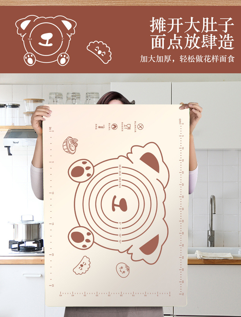 小熊硅胶垫加厚揉面垫子食品级擀面垫家用案板大号厨房烘焙和面垫