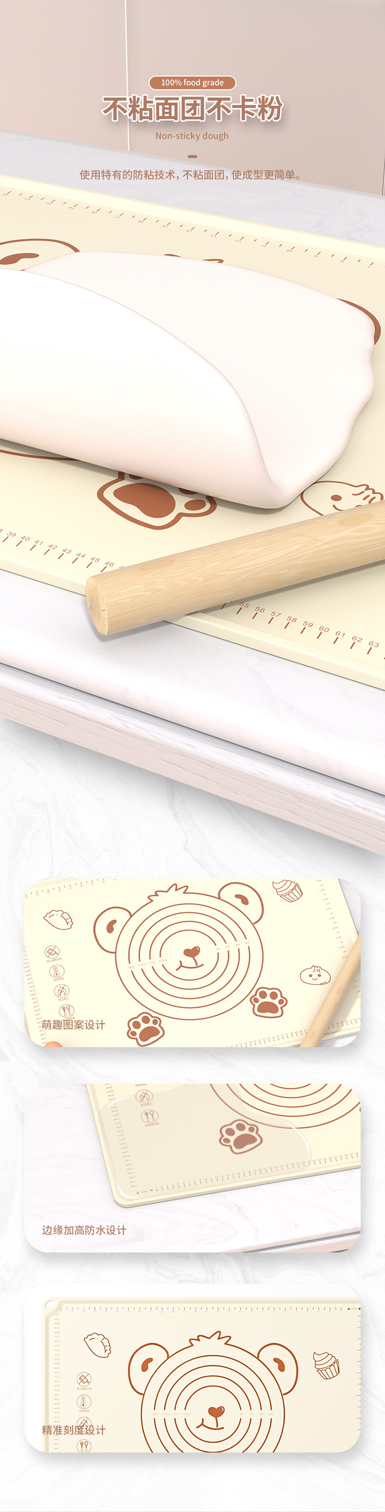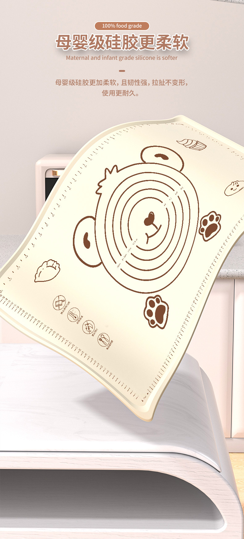 小熊揉面垫家用加厚硅胶垫擀面垫卡通烘焙面板面板案板大号食品级