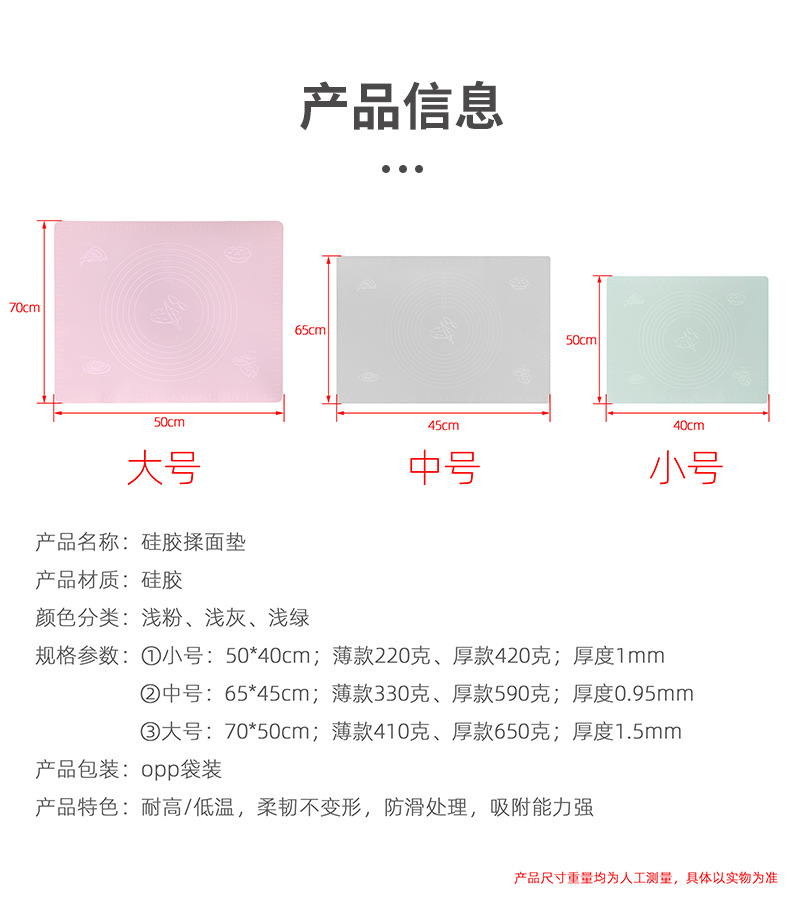 跨境硅胶揉面垫 食品级防滑加厚擀面垫 不粘案板垫烘焙加大硅胶垫
