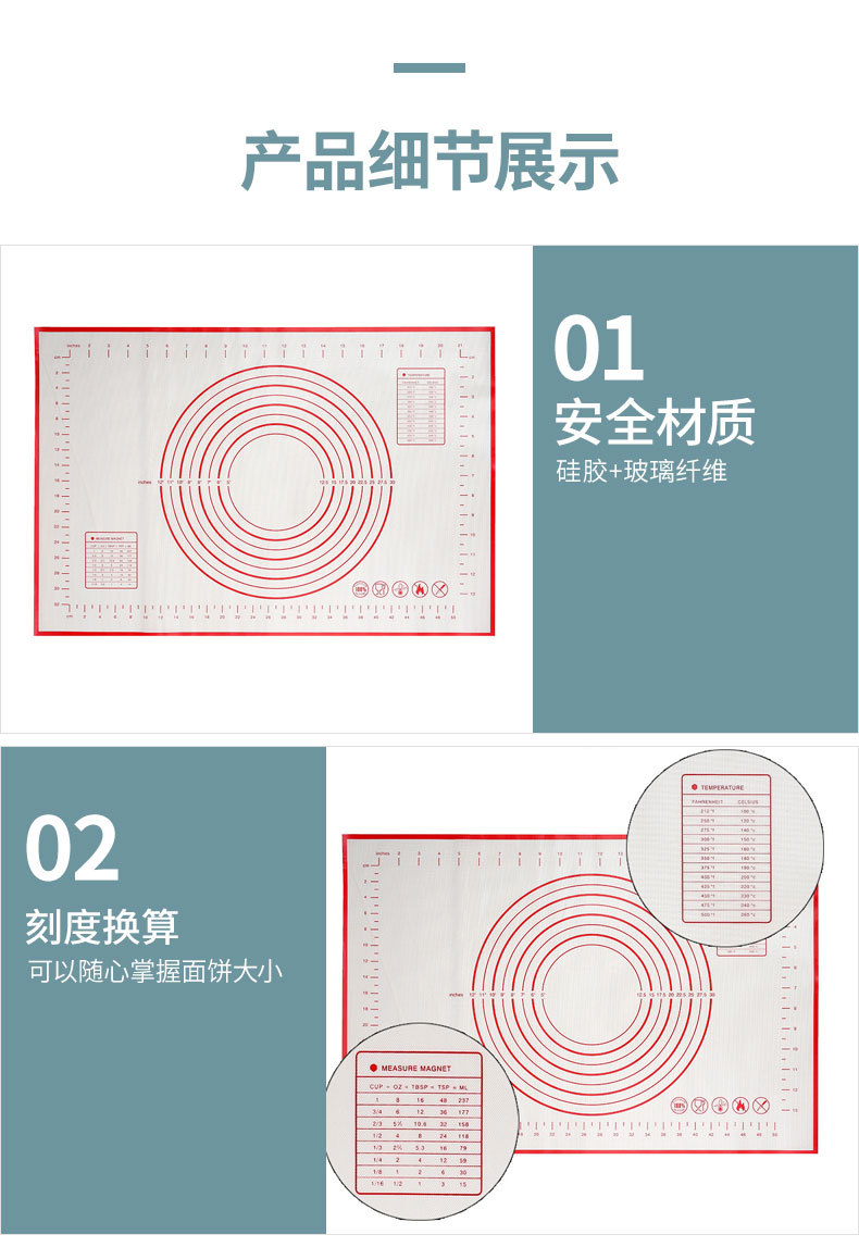 大号硅胶揉面垫烘焙垫带刻度防滑不沾擀面垫和面垫铂金硅胶面板
