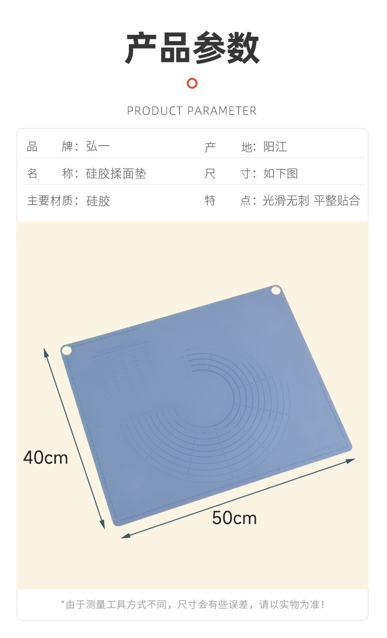 260g克烘焙包饺子和面硅胶揉面垫防滑不粘擀面垫纯色家用硅胶面垫