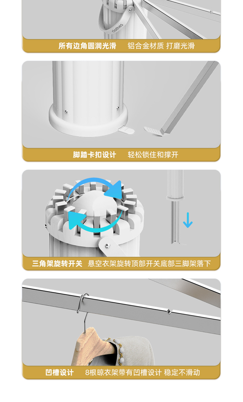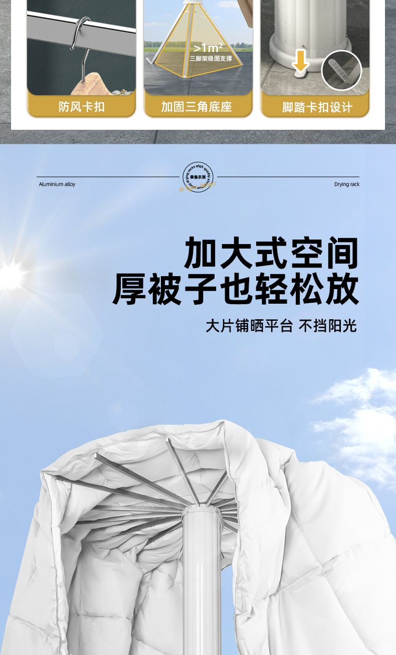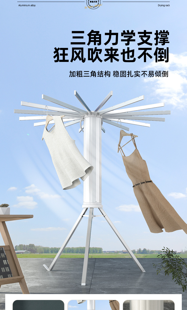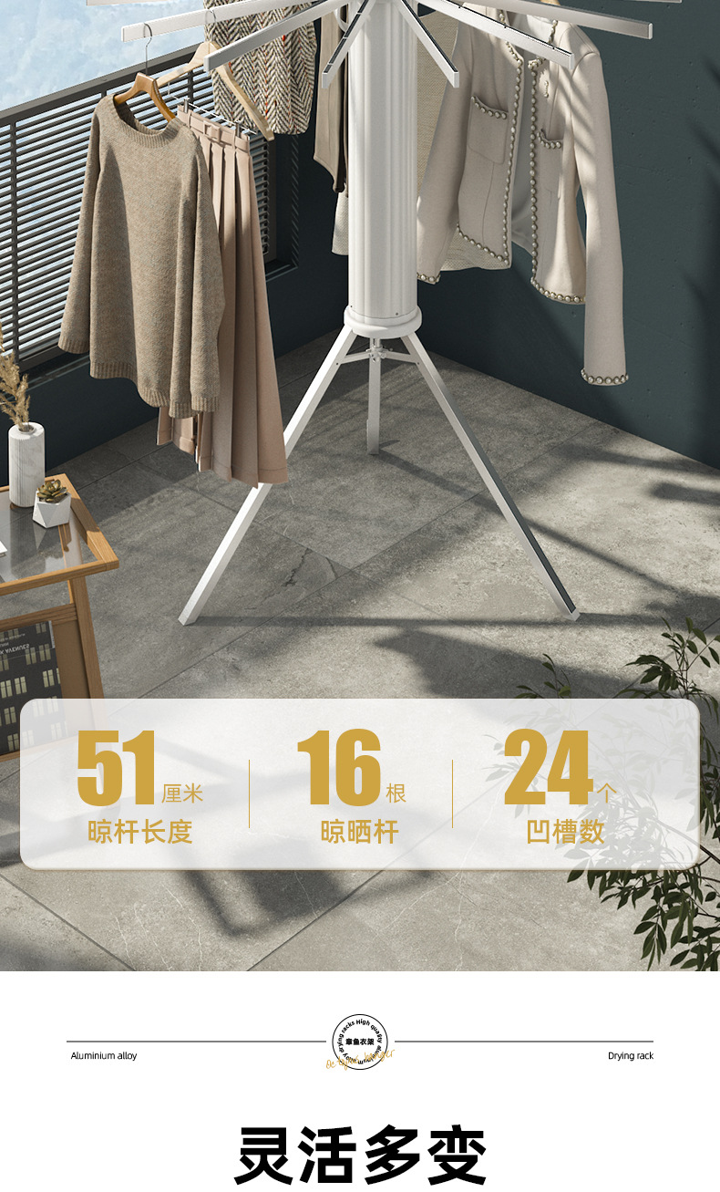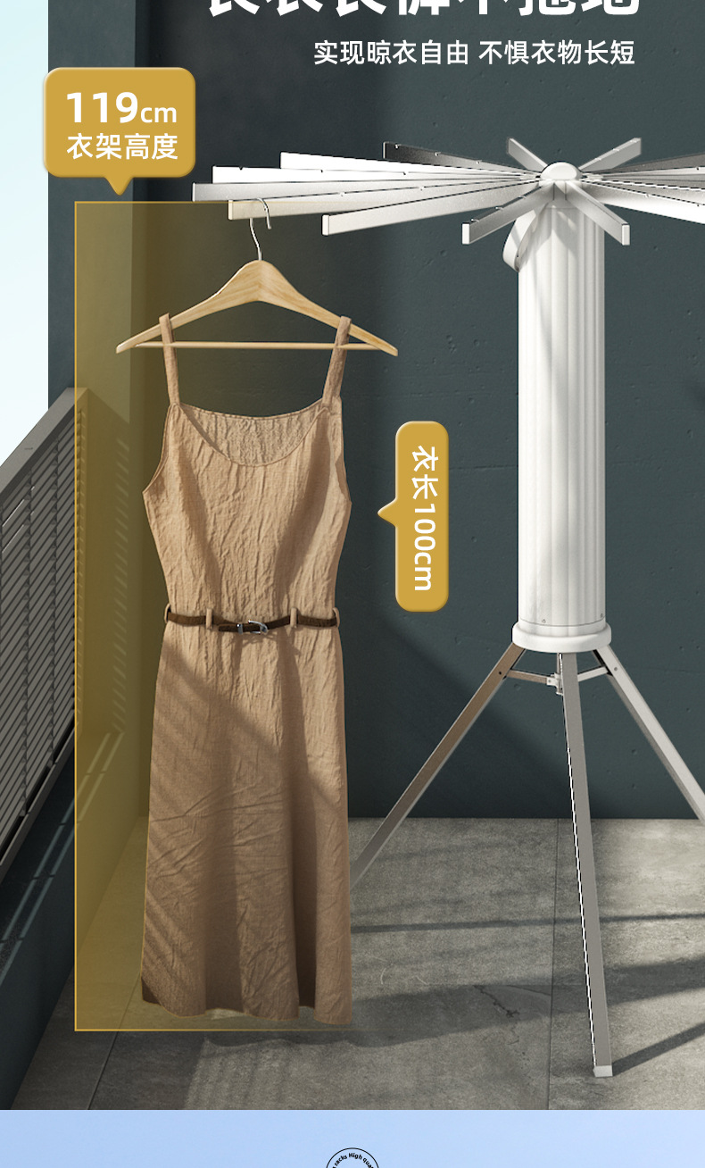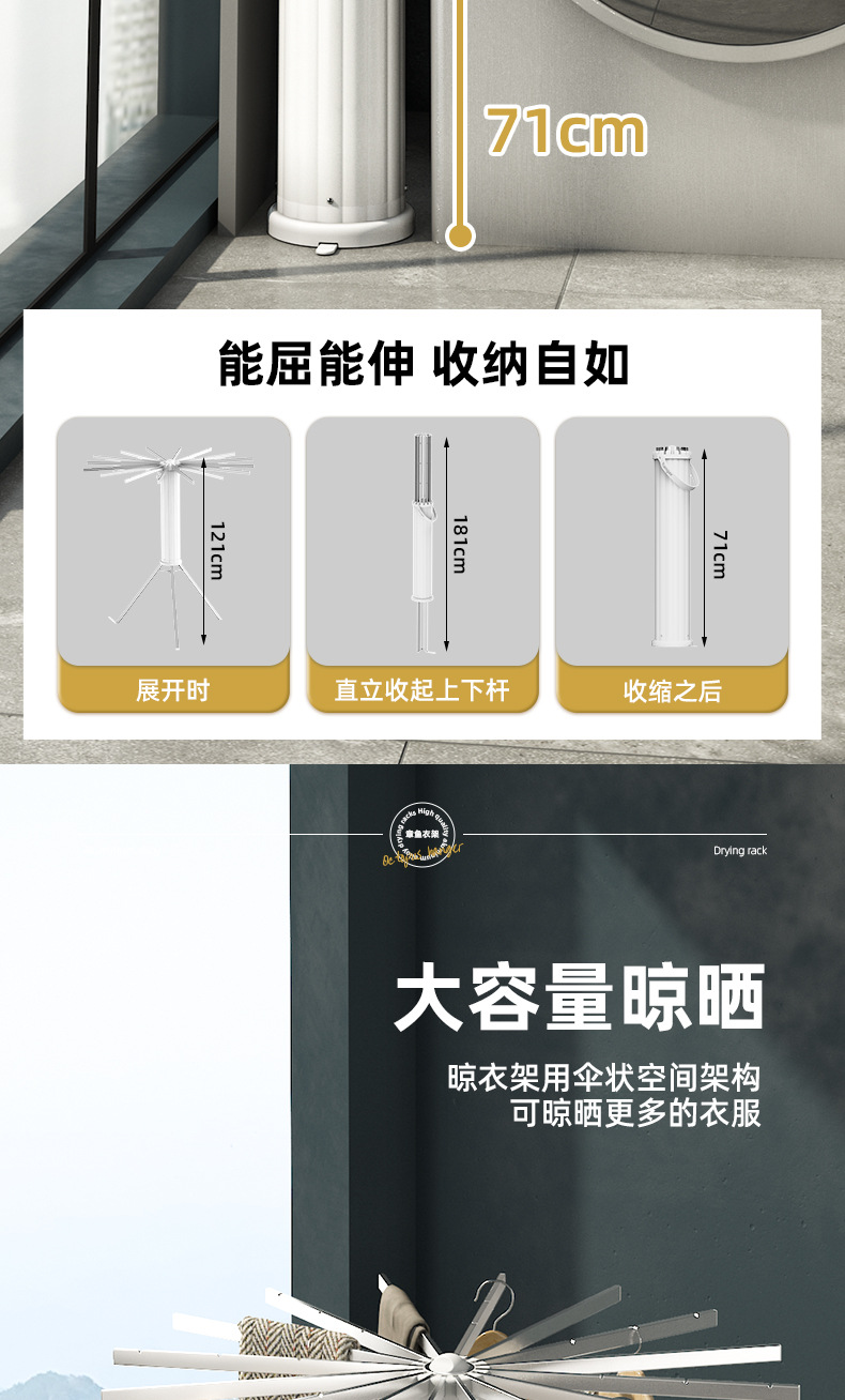 免安装晾衣架落地阳台折叠晾衣杆隐形室内章鱼挂衣家用晒被子神器