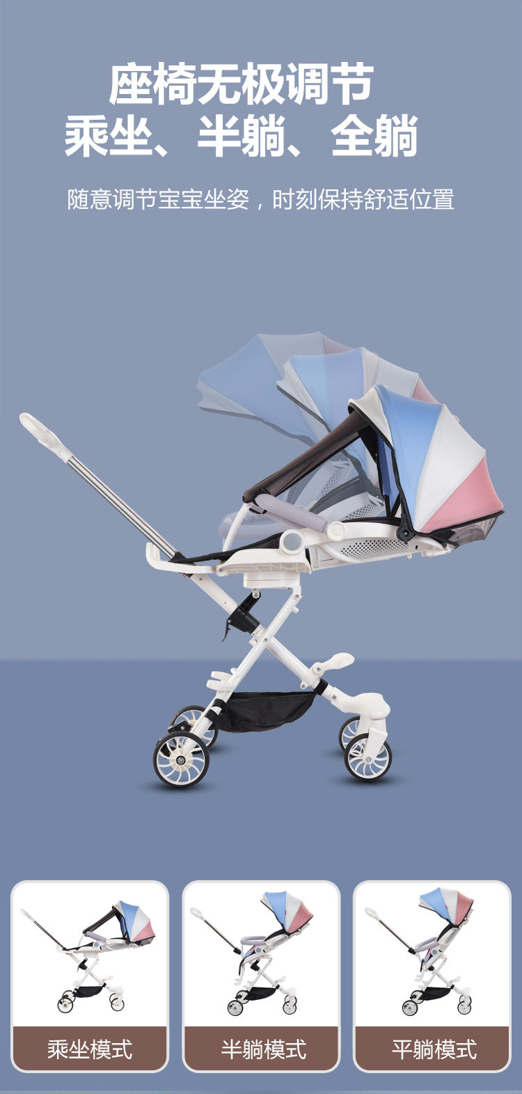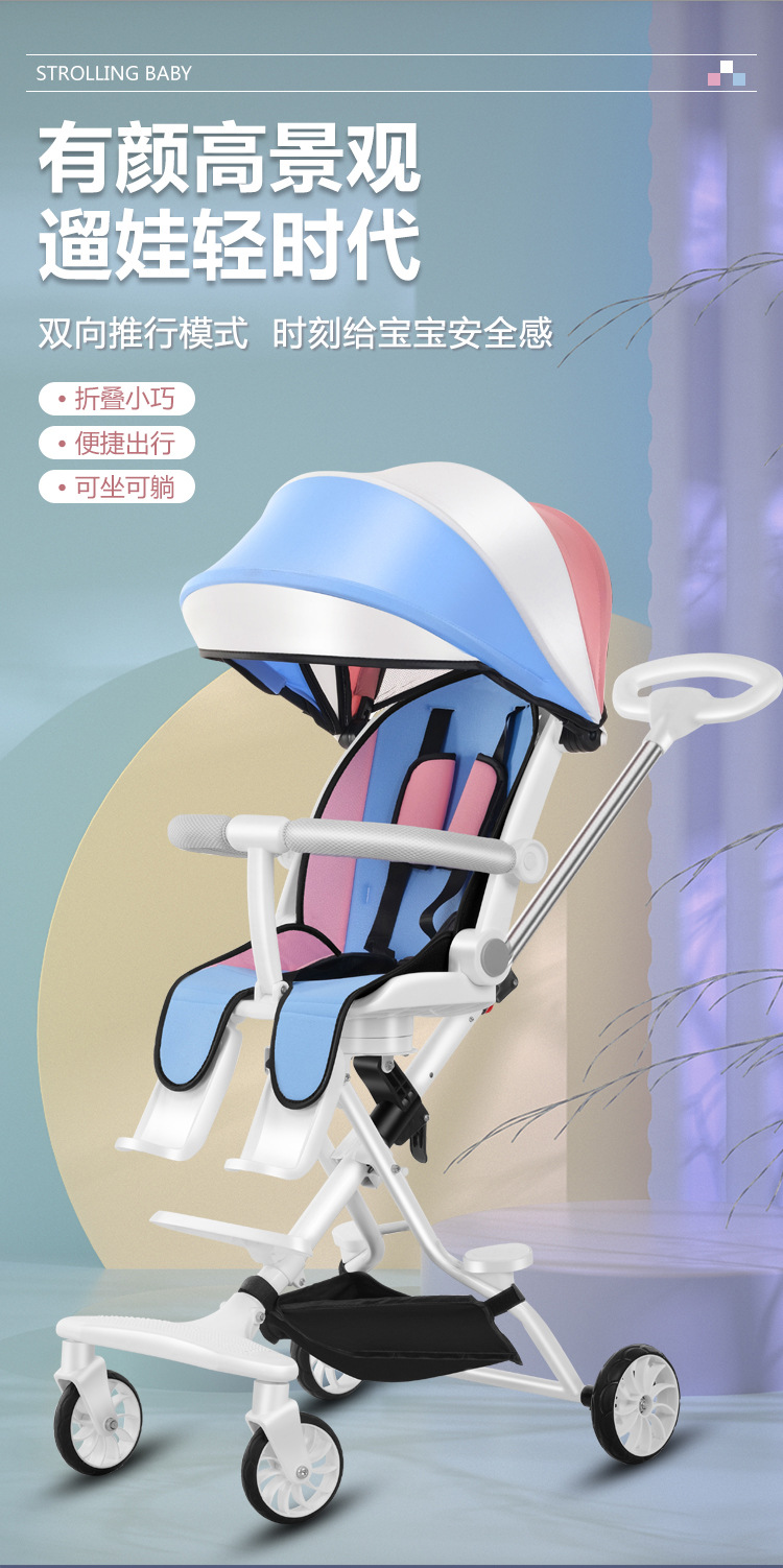 遛娃神器手推车轻便可坐可躺可折叠0-5岁高景观溜娃神器婴儿车