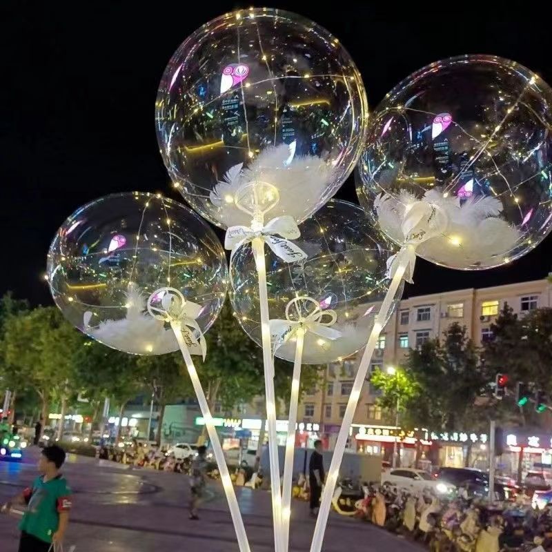 网红波波球羽毛带灯透明波波球发光气球批发街卖摆地摊