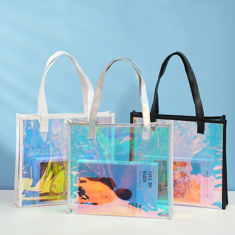 炫彩pvc手提袋塑料透明袋子logo伴手礼包PVC镭射手提袋礼品袋定制