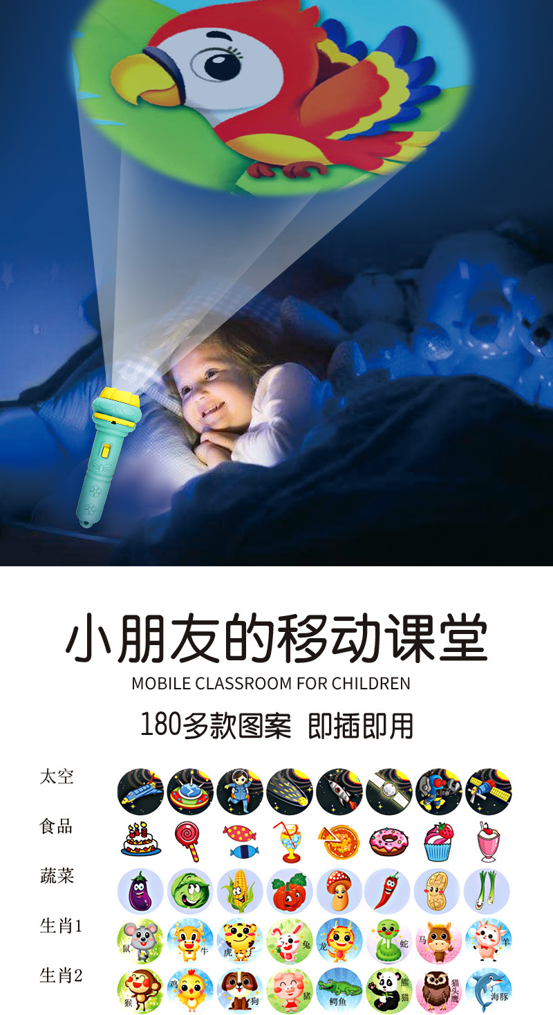 跨境儿童投影手电筒玩具礼物宝宝迷你投影仪发光玩具早教认知地摊