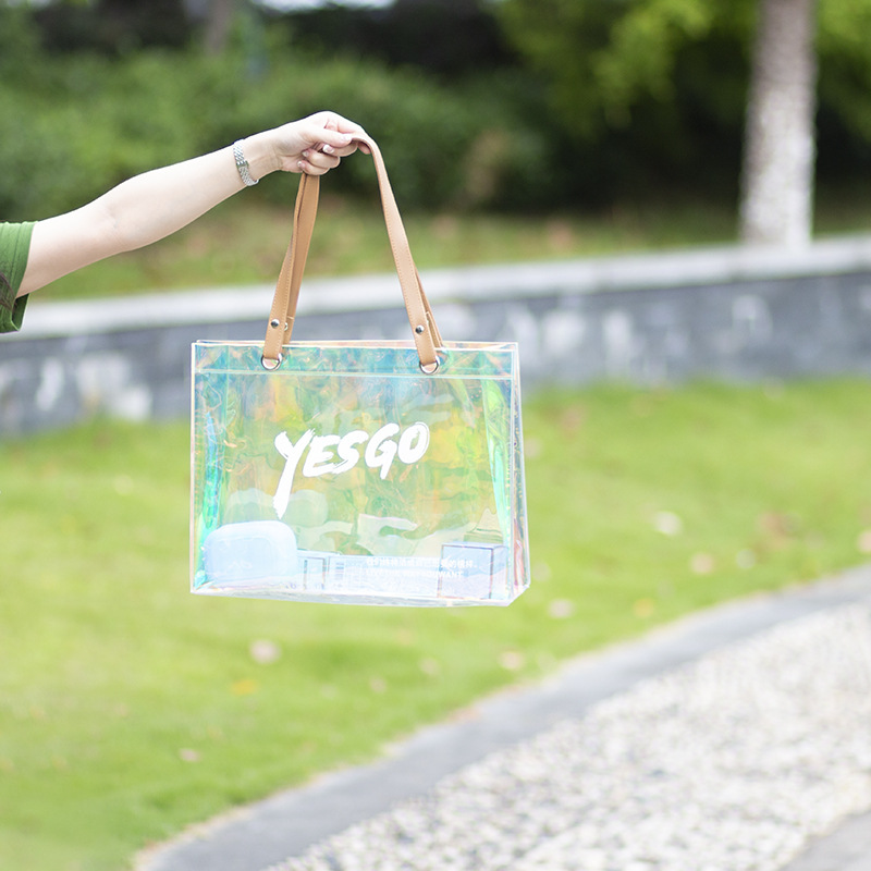 PVC手提袋果冻透明包镭射tpu包装袋幻彩化妆品礼品伴手礼袋定 做