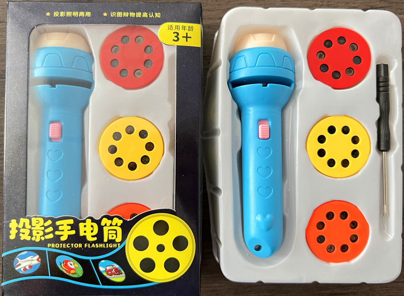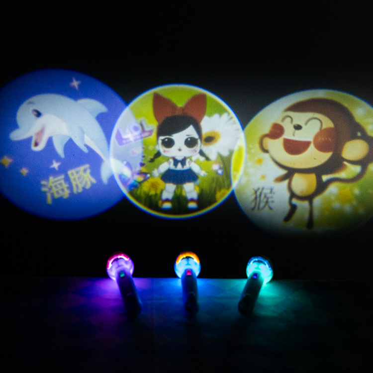 儿童发光投影LED手电筒宝宝益智教学认知早知识动物图案睡前故事