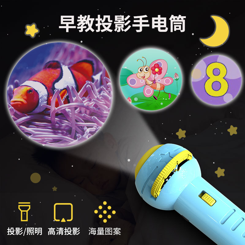 儿童趣味投影仪手电筒宝宝益智早教图案认知幼儿园发光玩具批发
