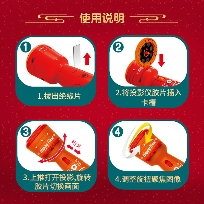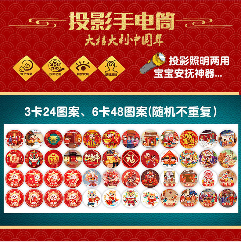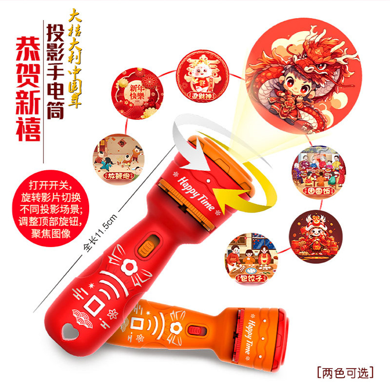 龙年儿童玩具投影手电筒发光玩具宝宝早教识图投影灯过年新年礼物