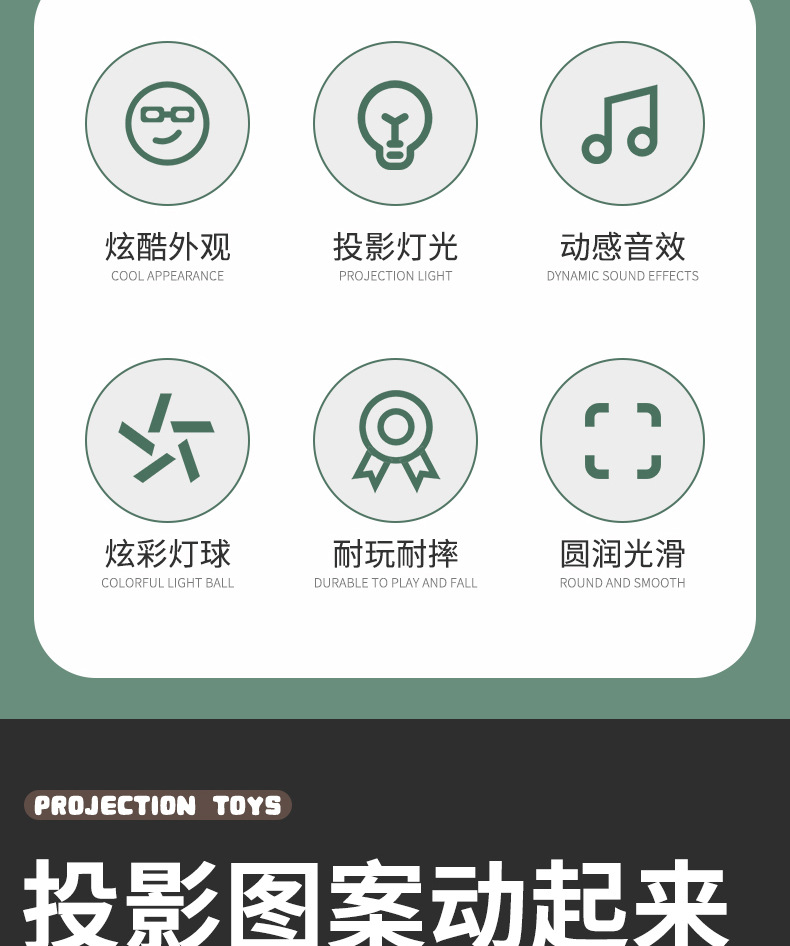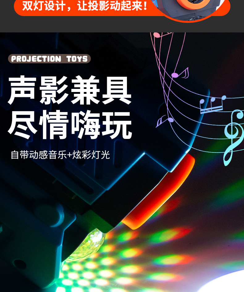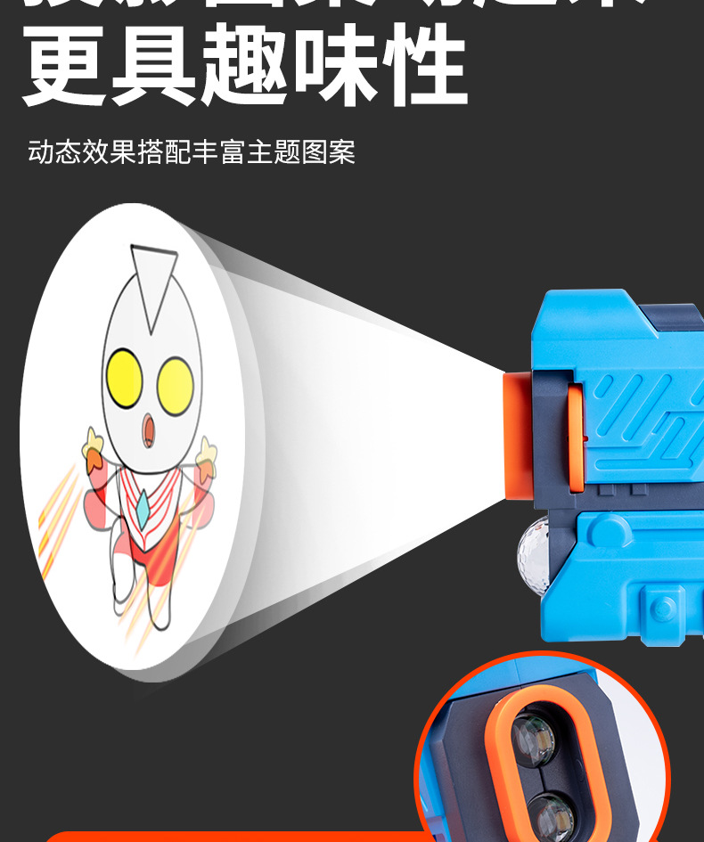 跨境儿童动态投影枪手电筒发光玩具幻灯片音乐卡通动画趣味投影仪