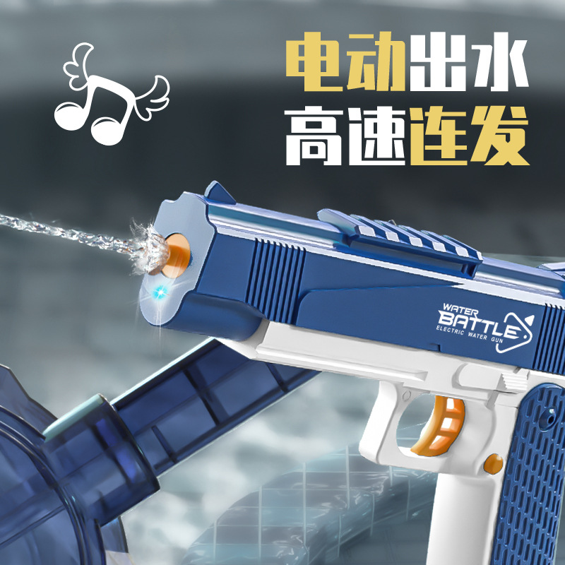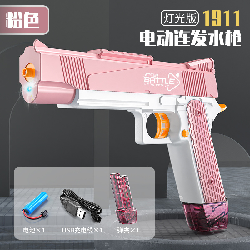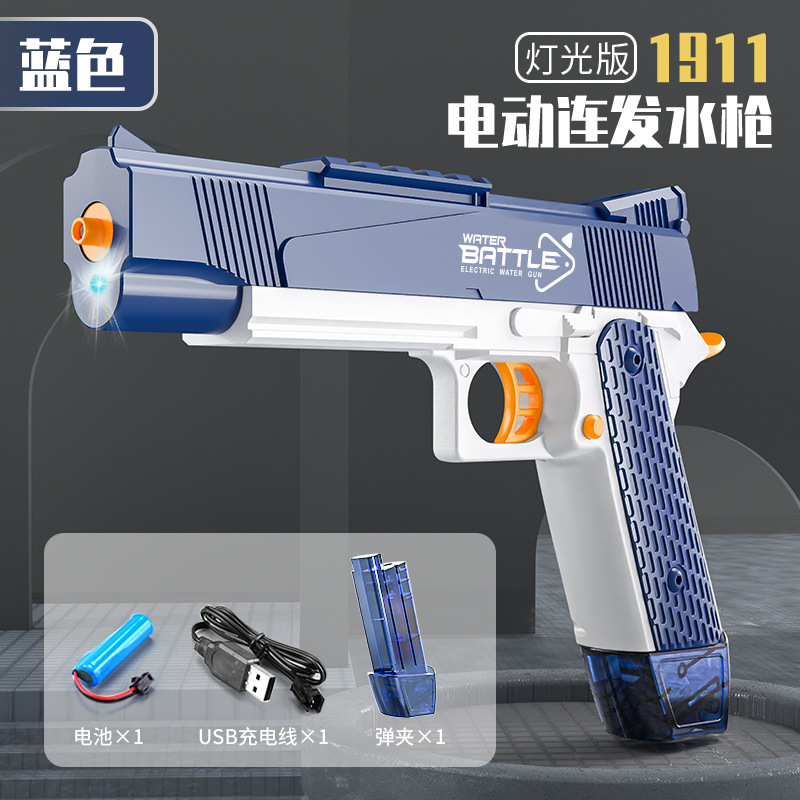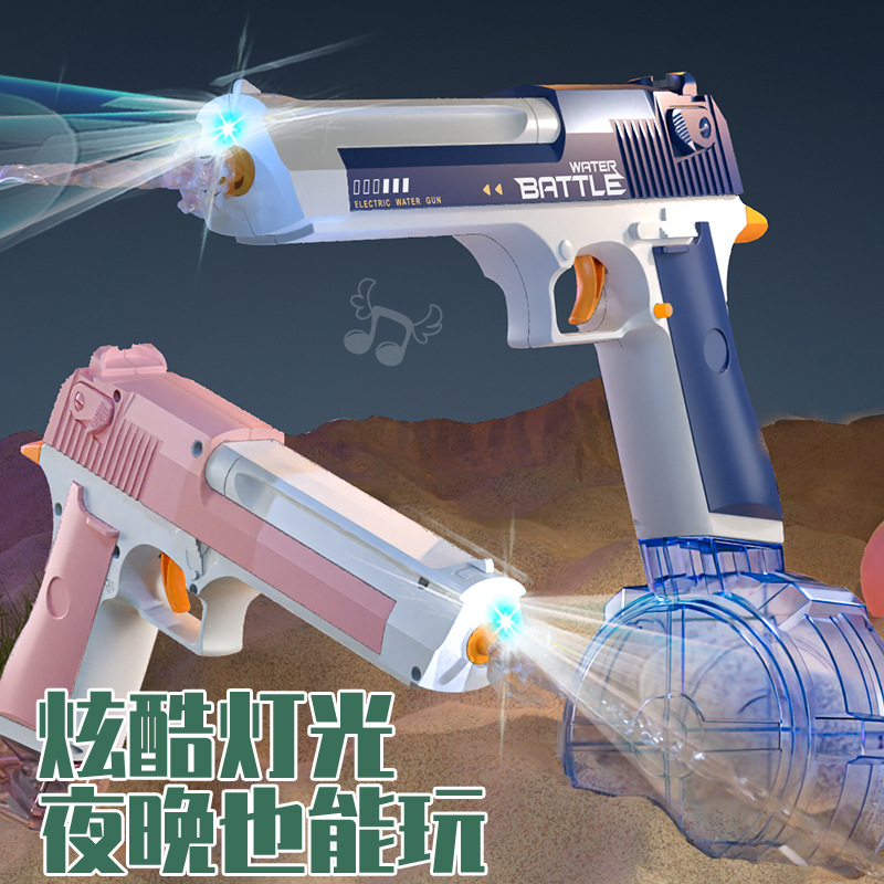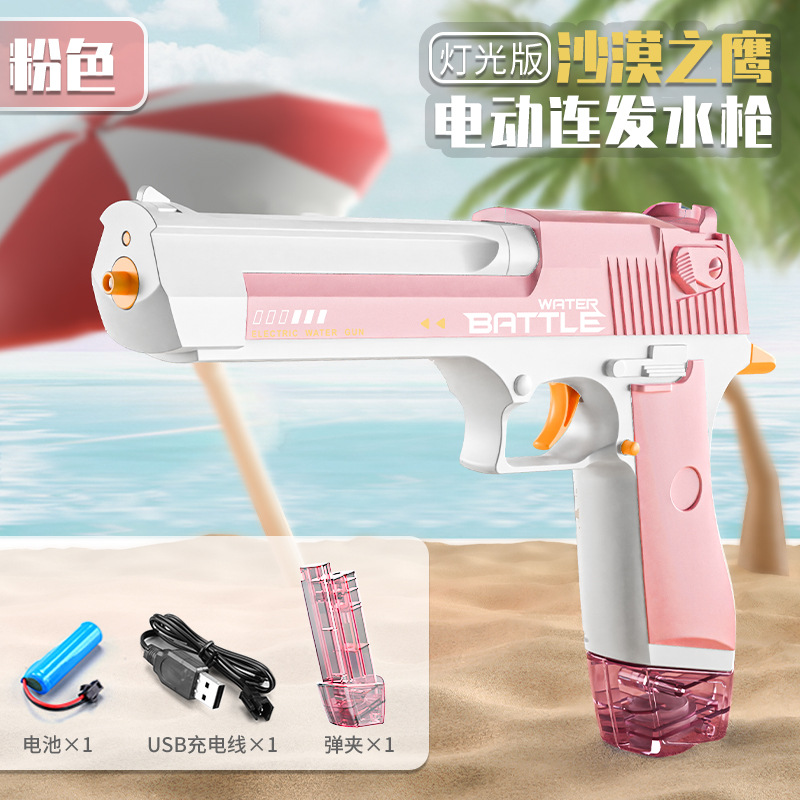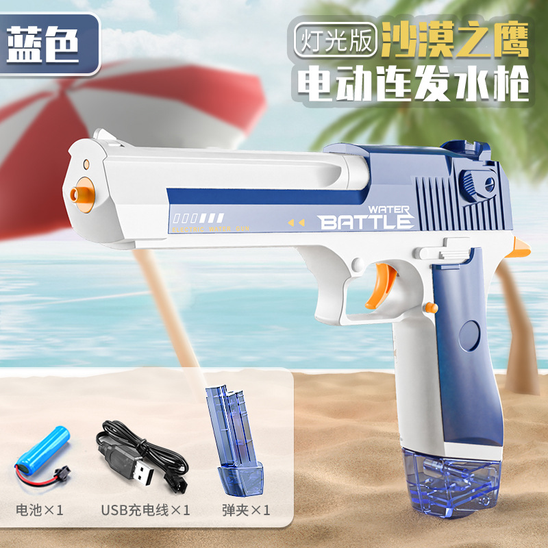 跨境新品夏季全自动电动沙漠之鹰水枪带灯光连发充电1911戏水玩具