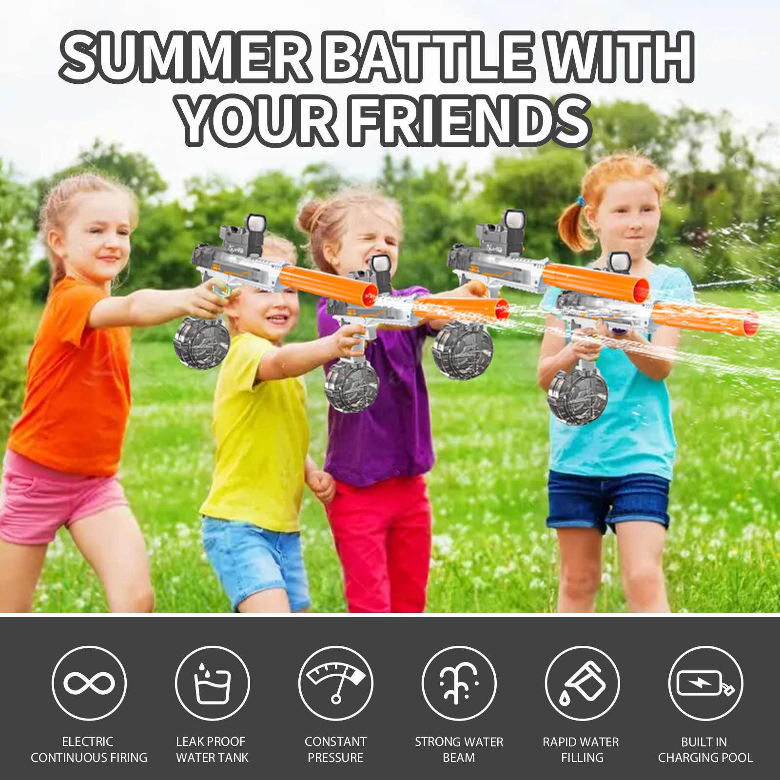 2024跨境新款联动电动水枪全自动连发超远射程夏天男女孩戏水玩具