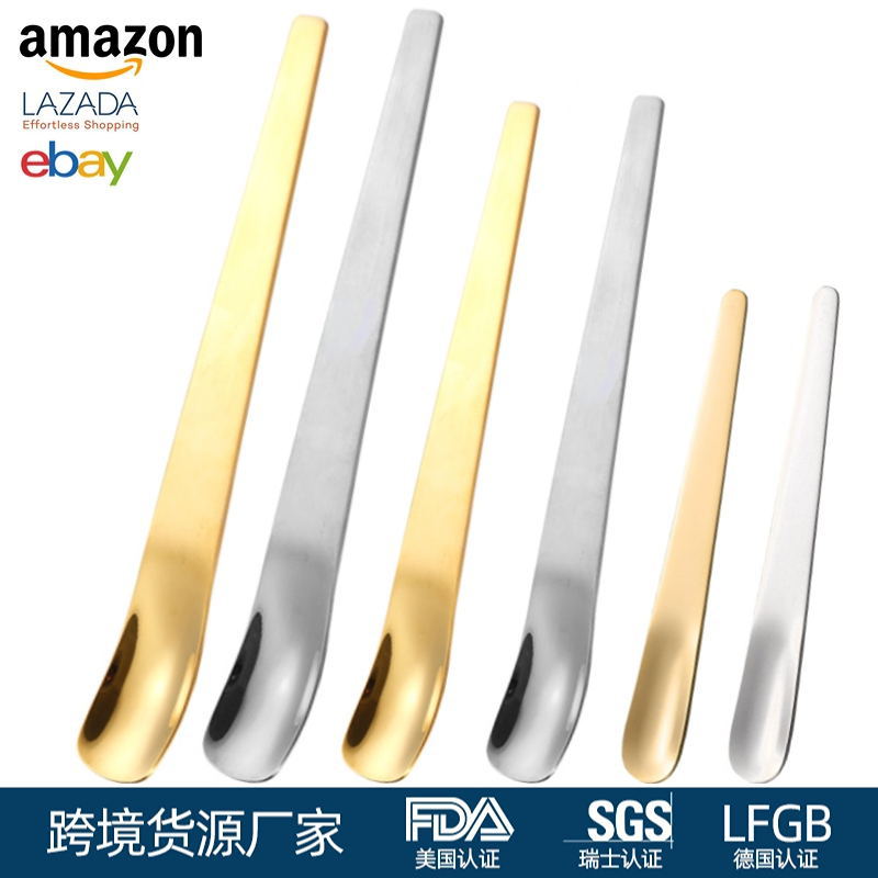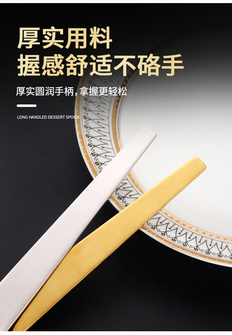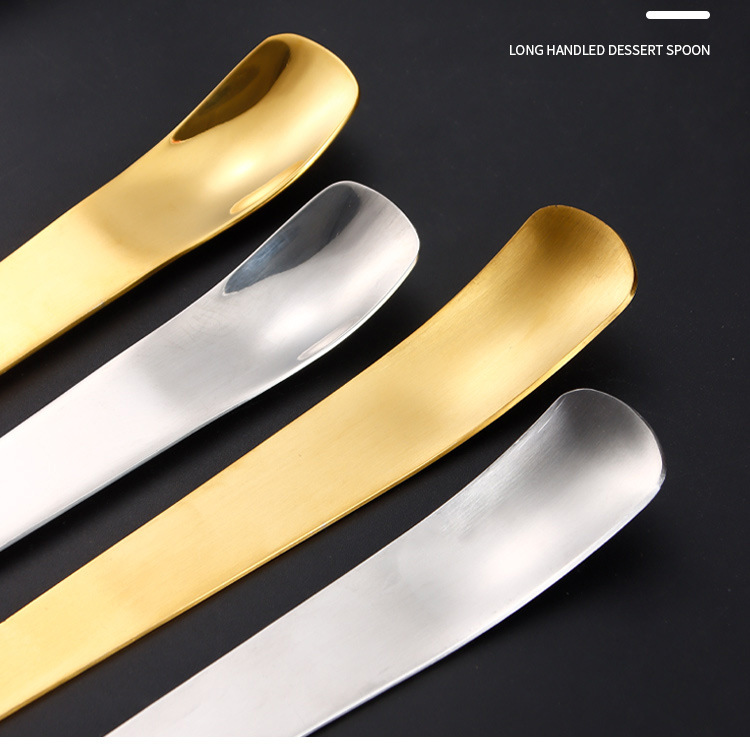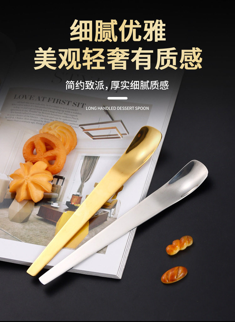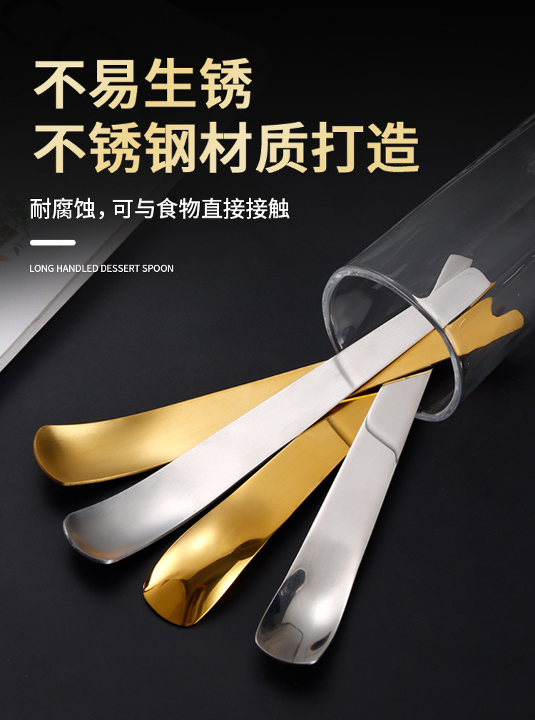 跨境不锈钢勺子长柄雪糕甜品勺家用搅拌勺高颜值蛋糕勺网红猫粮勺