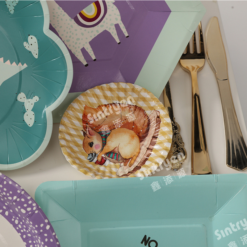 派对餐具party一次性纸杯纸盘碟子创意卡通主题生日蛋糕盘子批发