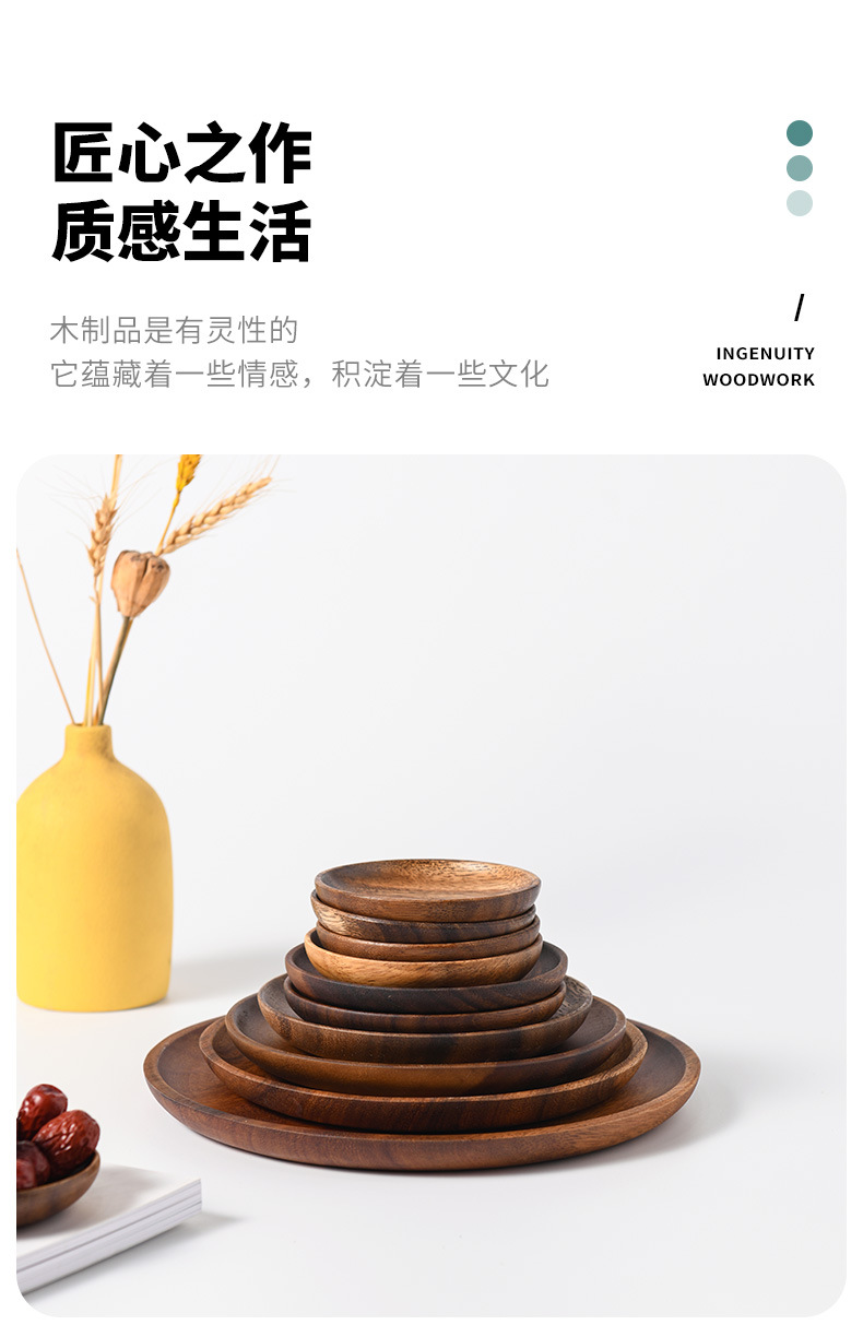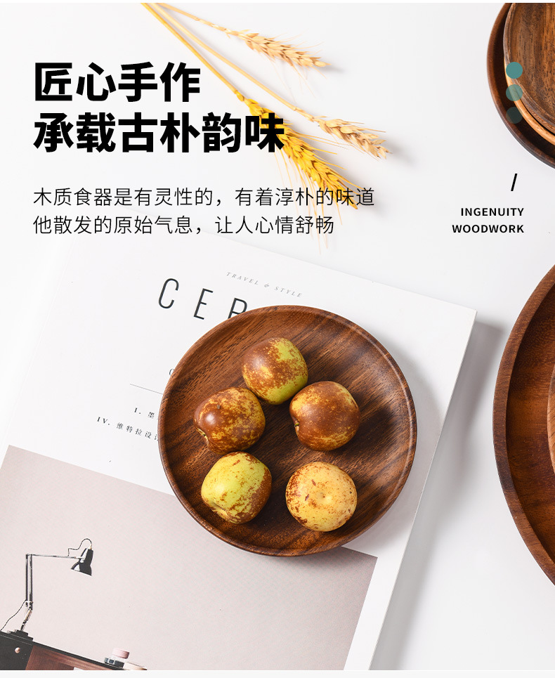 相思木整木盘子水果盘婚庆干果盘实木圆形小盘蛋糕碟子胡桃木托盘