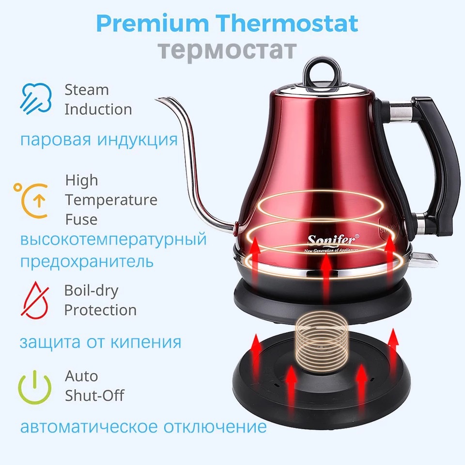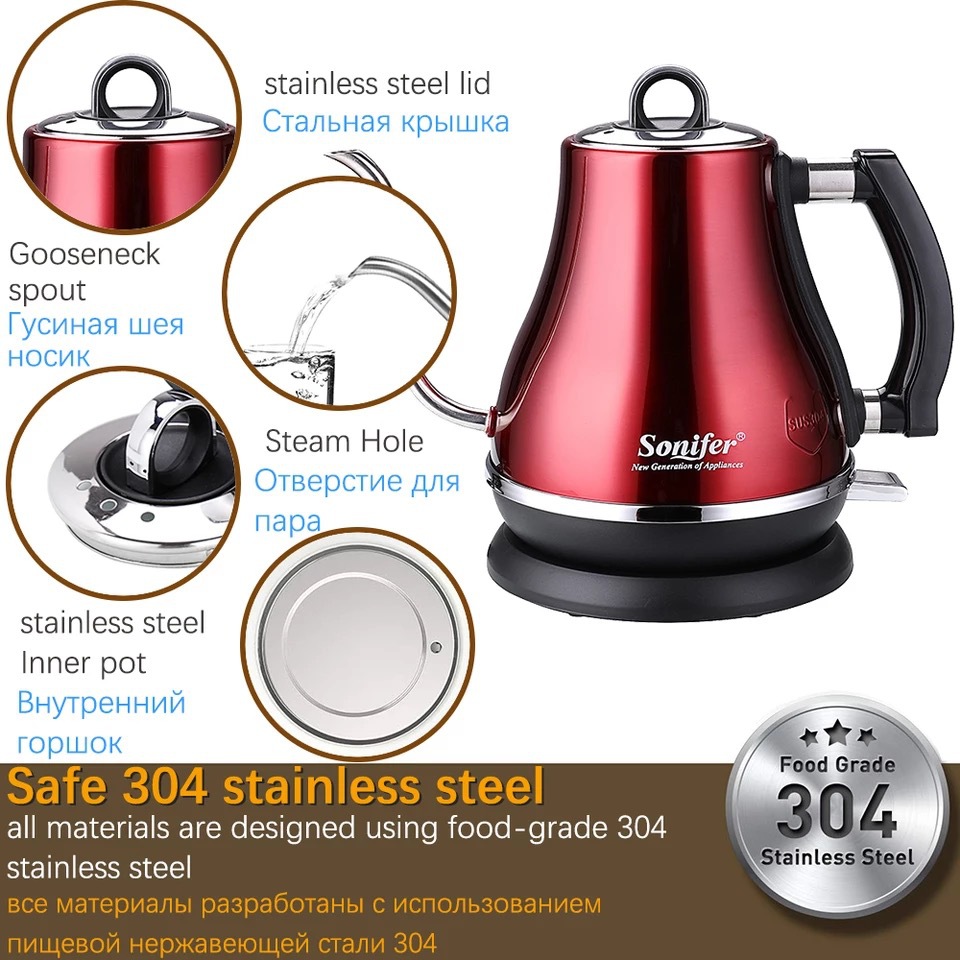Sonifer 跨境1.2L不锈钢电热水壶咖啡壶 coffee kettle SF-2049