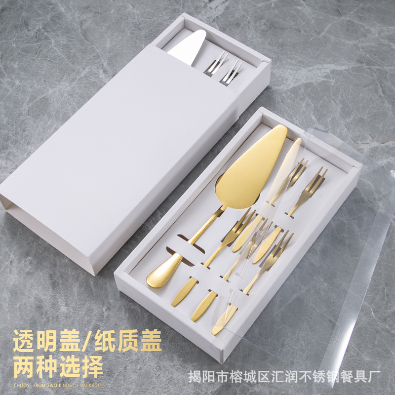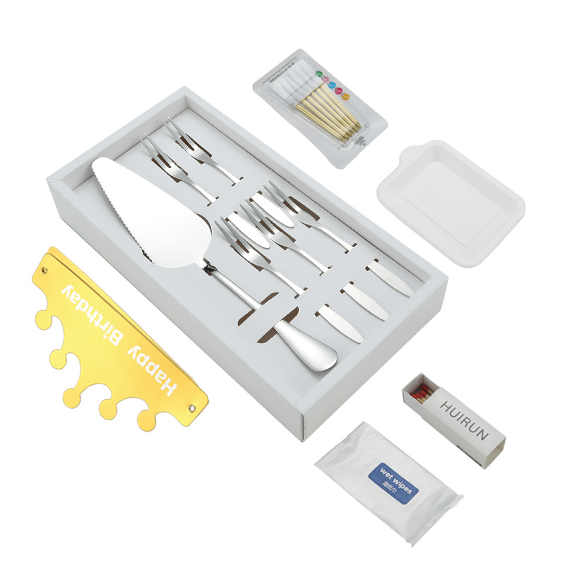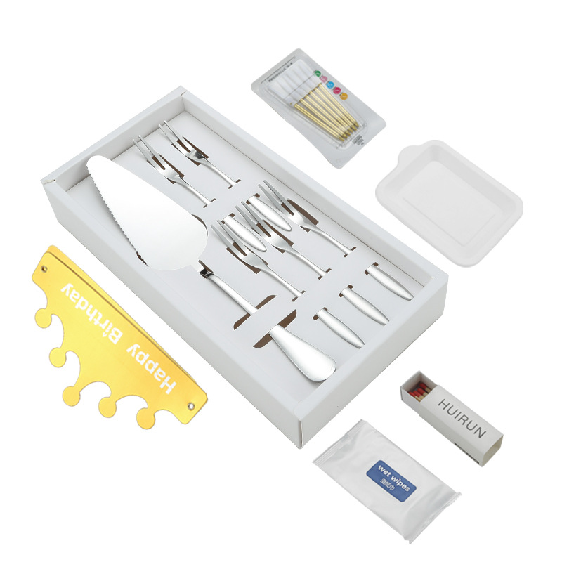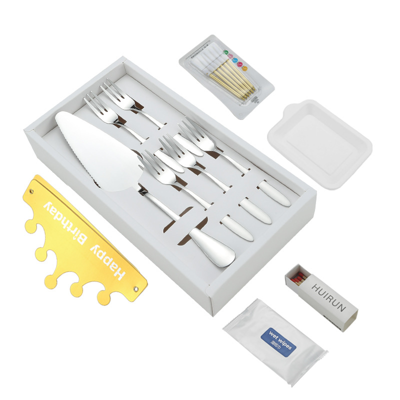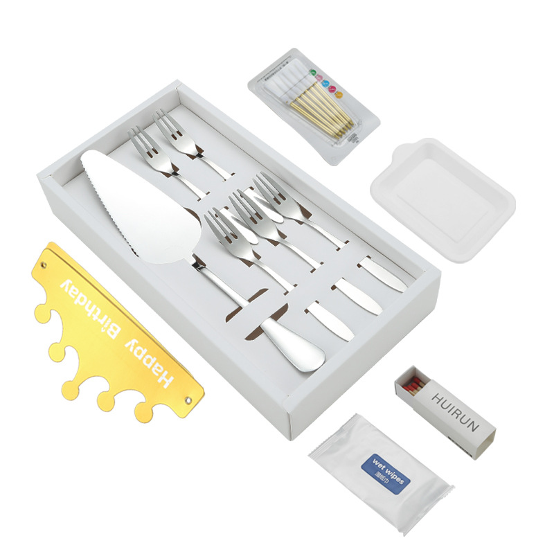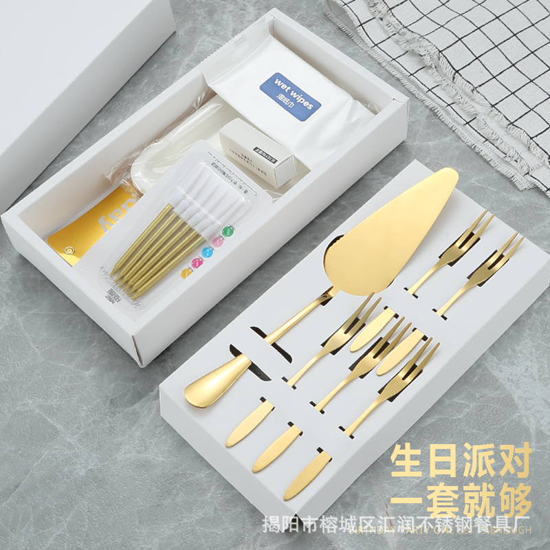 七合一组合不锈钢烘焙餐具套装 高端生日蛋糕刀叉餐盘帽子 加logo