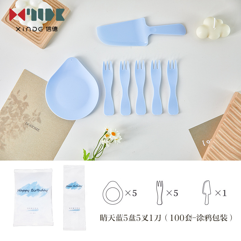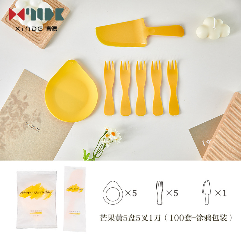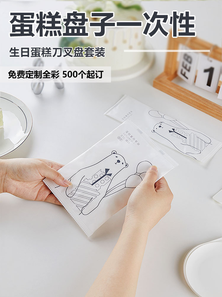 蛋糕盘子一次性高档餐盘刀叉餐具生日套装食品级加厚塑料加印logo