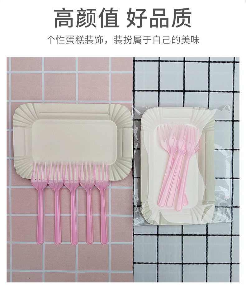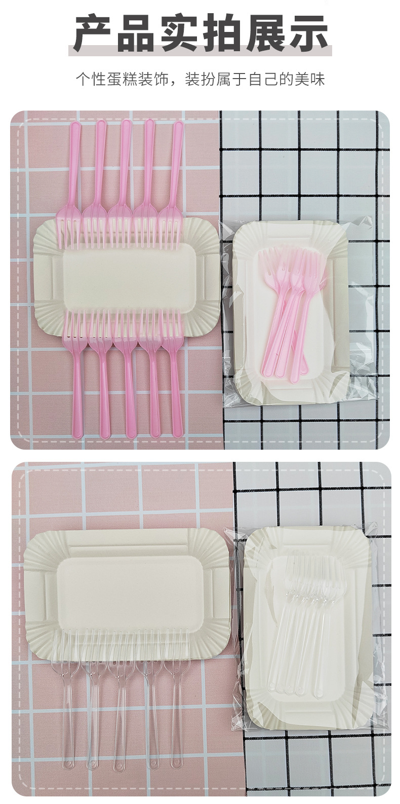 蛋糕餐具二合一纸盘叉子5盘5叉组合一次性套装生日蛋糕四齿叉盘子