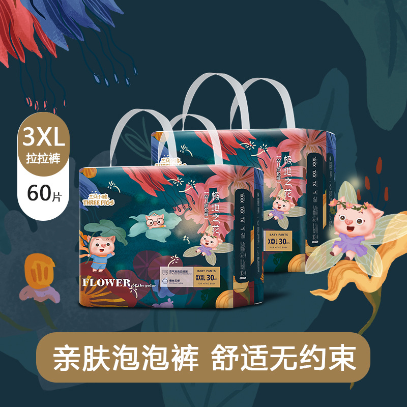 三只小猪极地之花系列亲肤泡泡裤纸尿裤大吸量全包臀拉拉裤批发