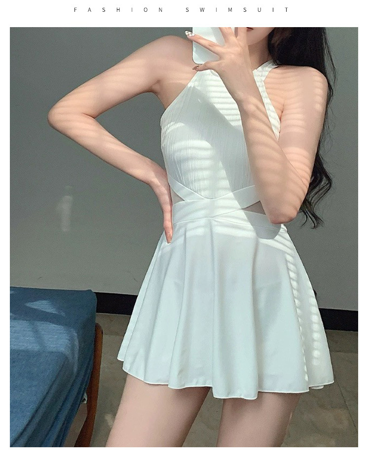 分体泳衣女新款爆款纯欲风保守遮肚显瘦露背性感泡温泉度假泳装女