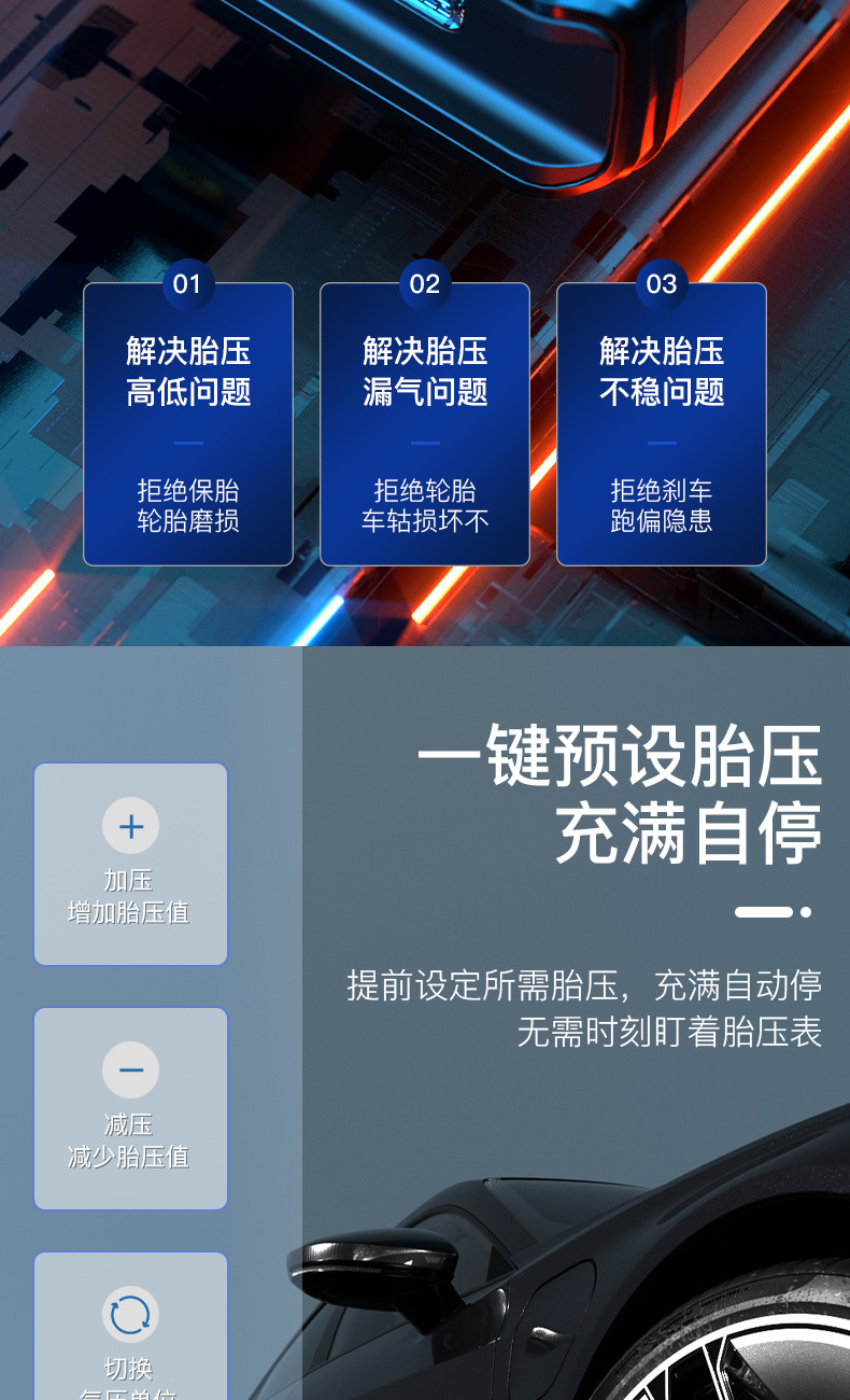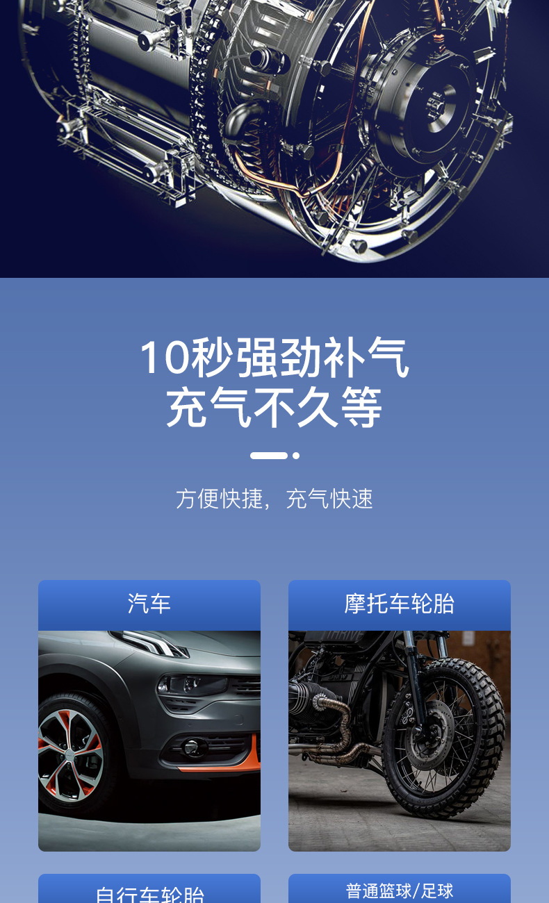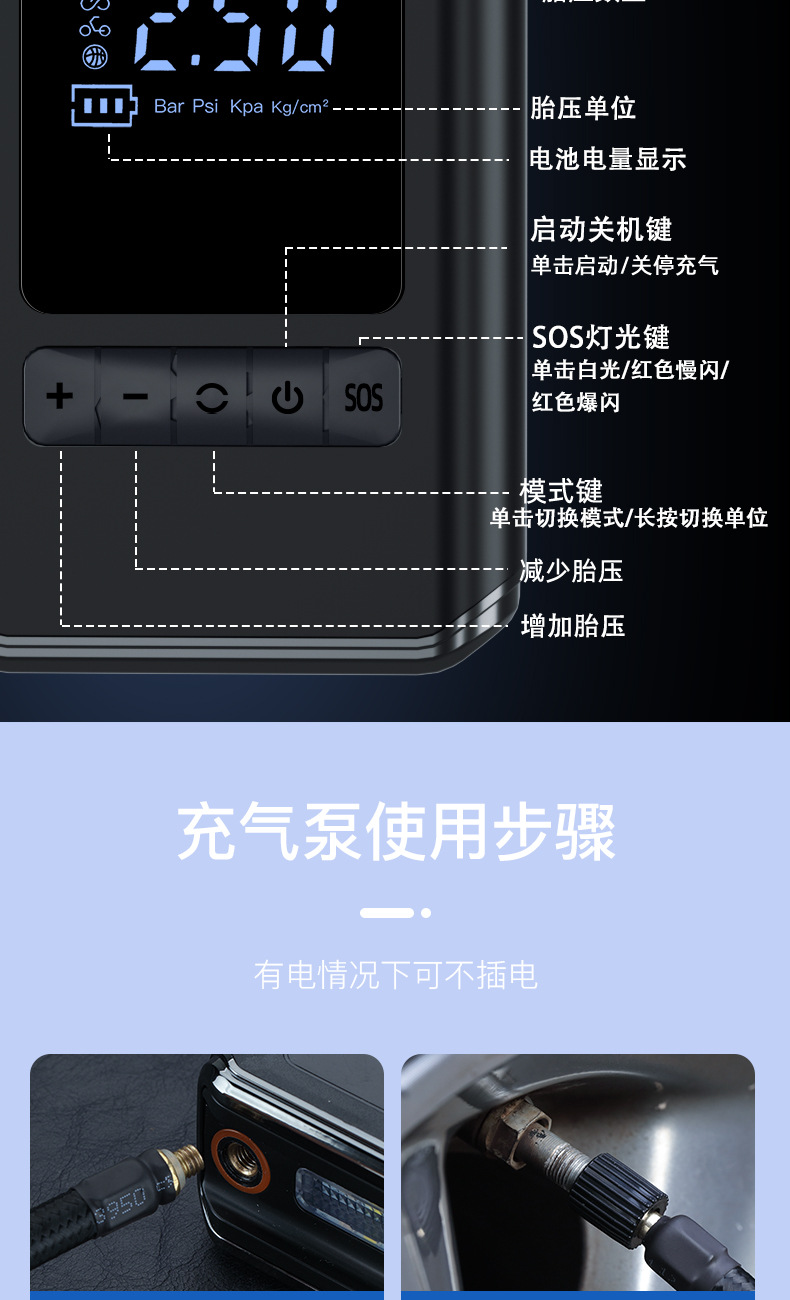 便携式迷你车载充气泵自行电动轮胎打气筒气泵手持无线充电数显