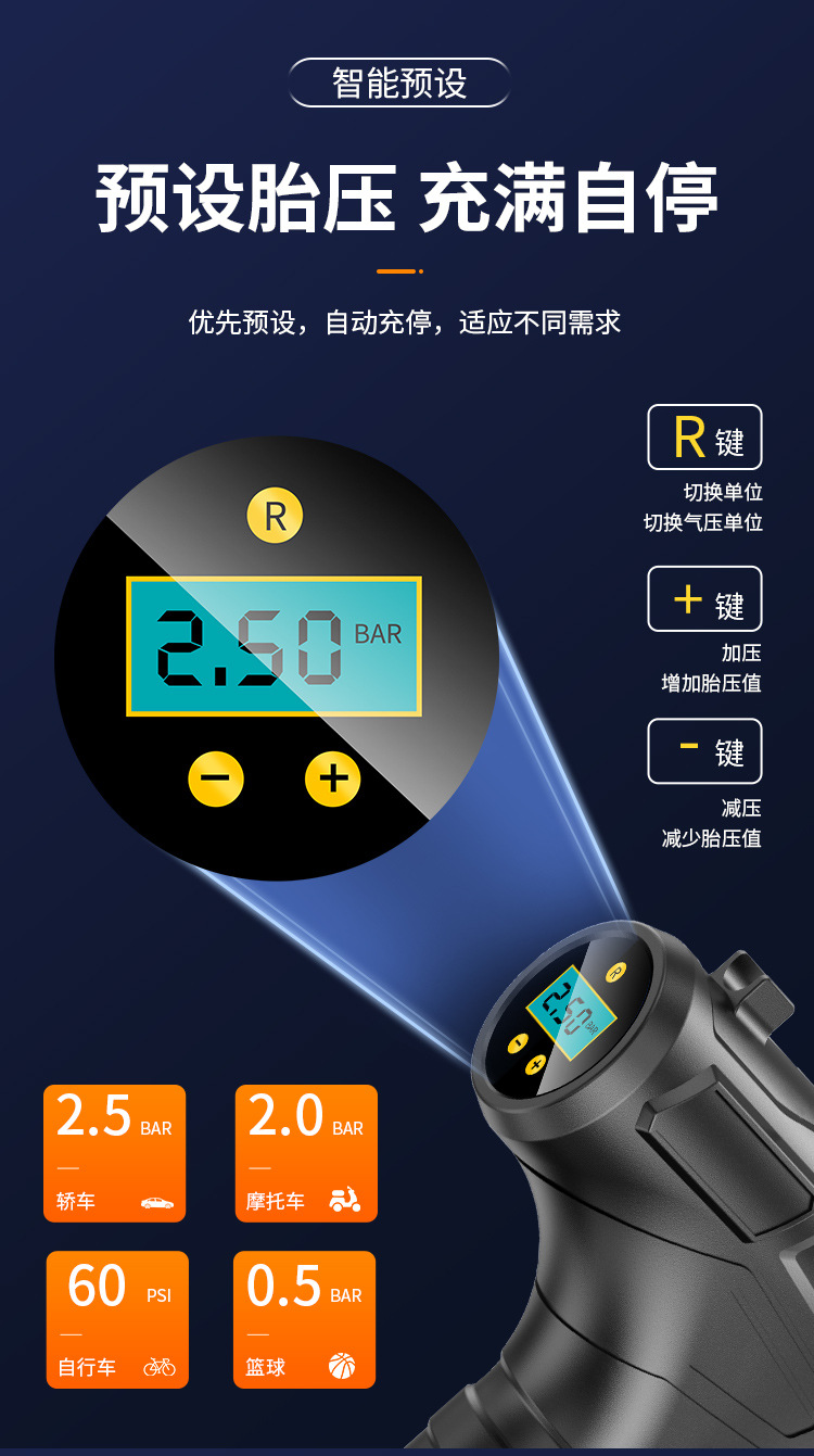跨境新款无线车载充气泵便携式汽车轮胎打气泵多用途打气筒