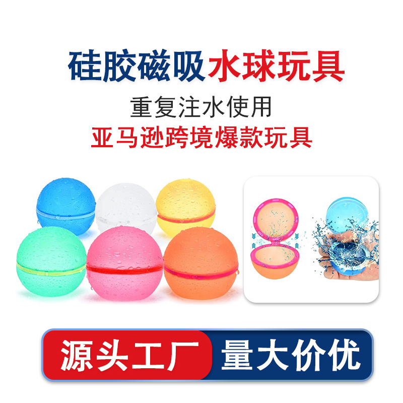 跨境热销磁吸硅胶水球可注水重复使用自吸水球水爆球硅胶儿童玩具