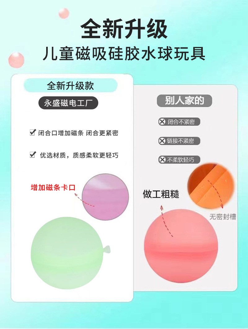 磁吸硅胶水球 可重复水气球硅胶水球玩具解压硅胶玩 支持跨经供货