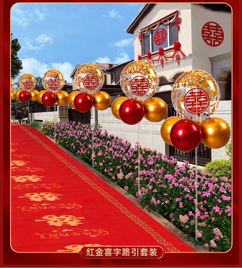 批发婚房引路结婚迎宾布置气球农村路边装饰路引立柱支架室外红色