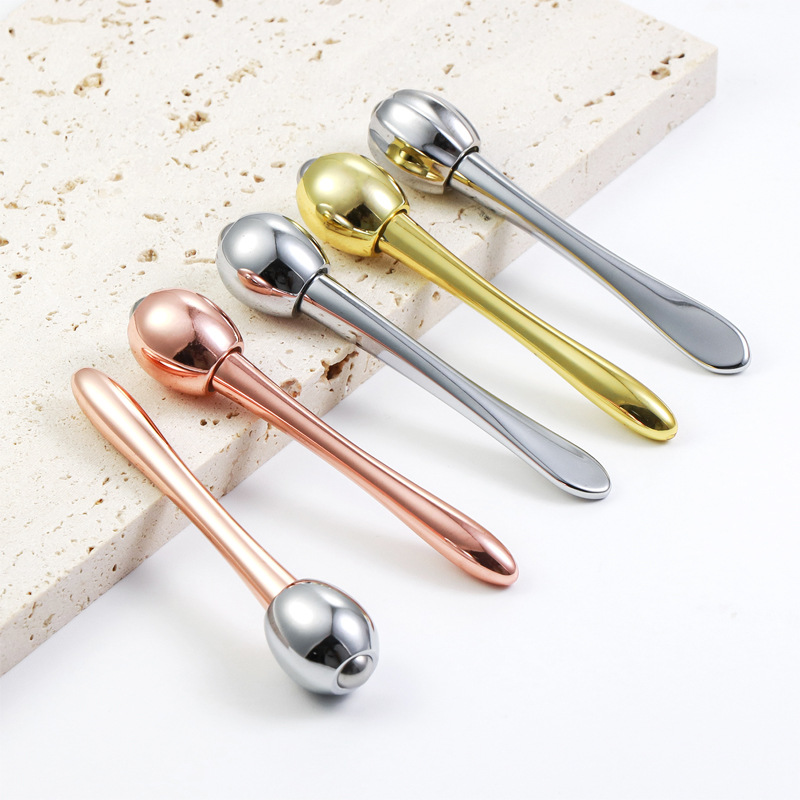 眼霜按摩棒滚珠膏霜面霜勺子南瓜头脸部美容金属眼霜棒化妆品勺