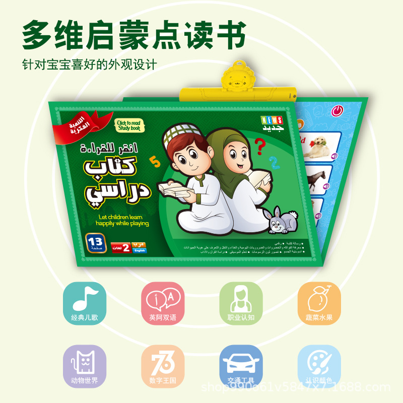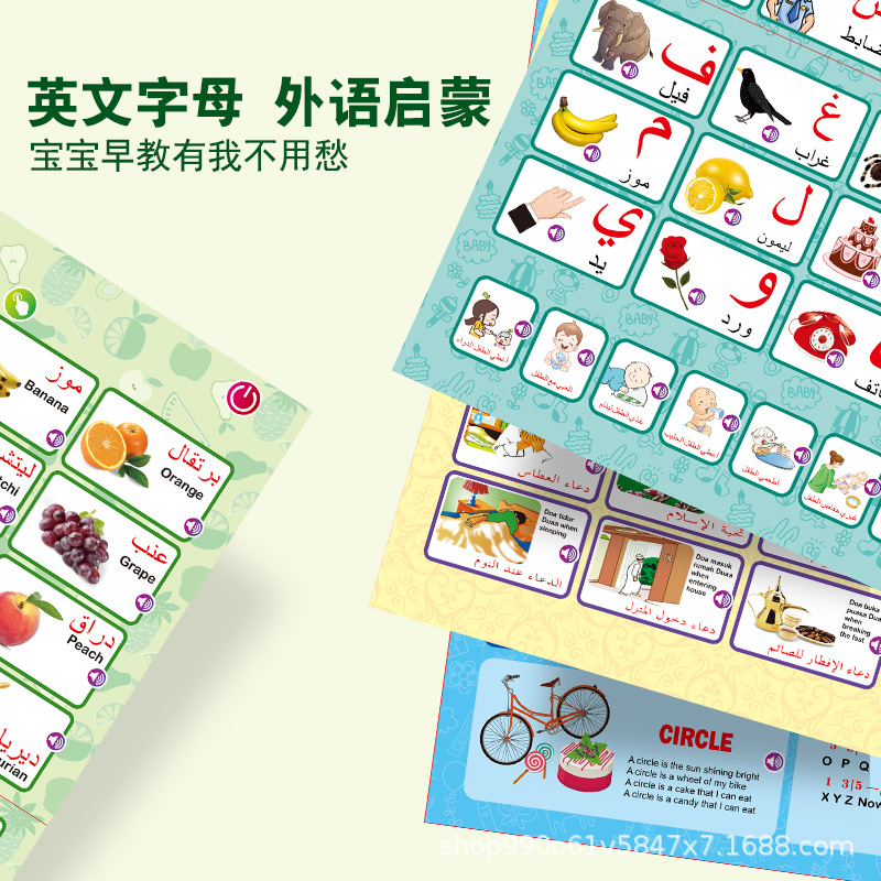 阿拉伯文英文双语点读书宝宝智力开发儿童画板英语早教挂图