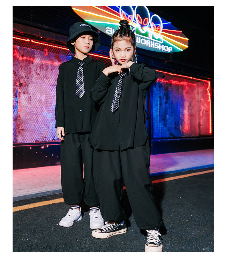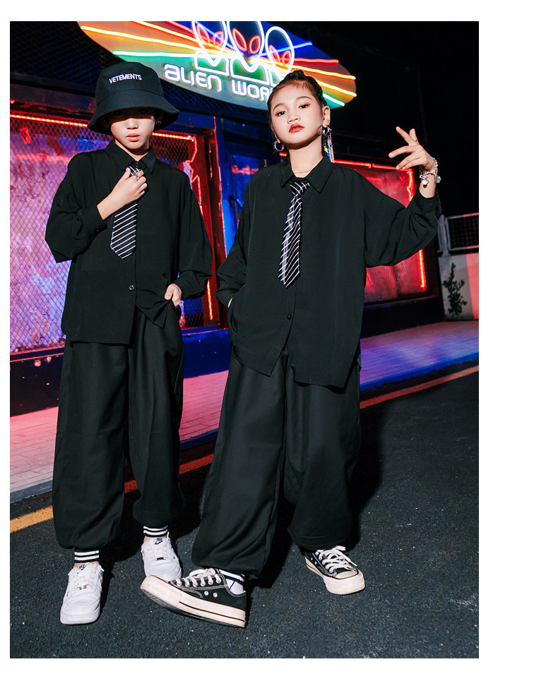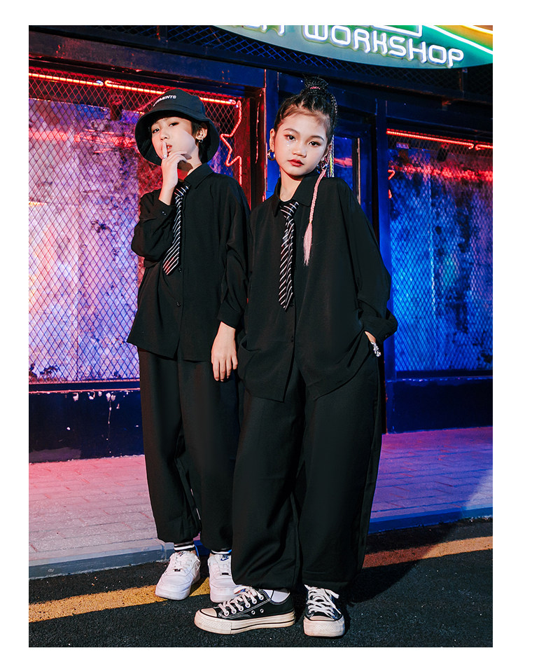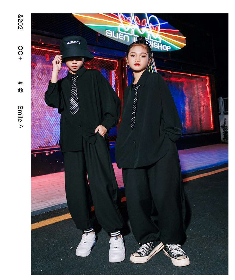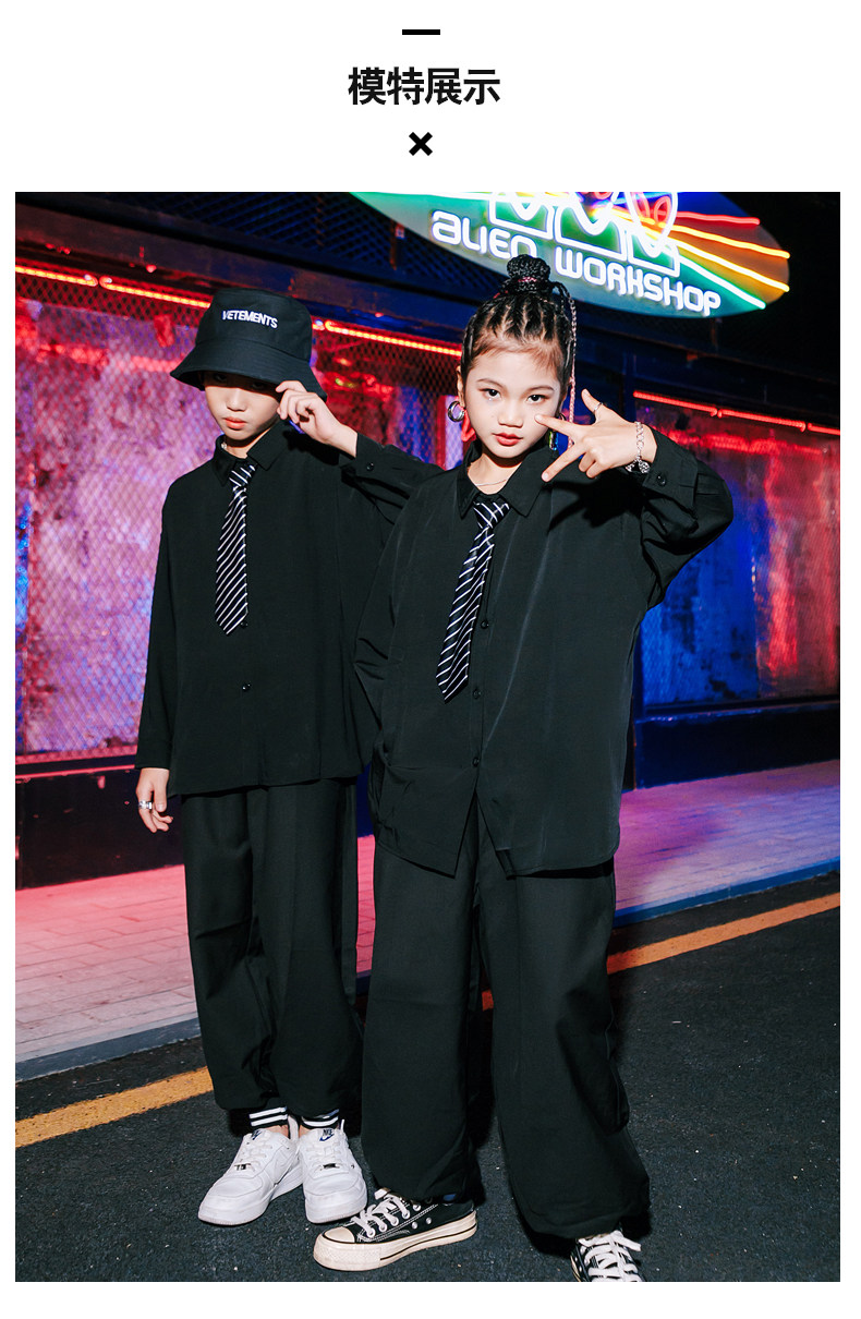 女童爵士舞表演服装儿童套装时髦衬衫 男童hiphop嘻哈街舞演出服