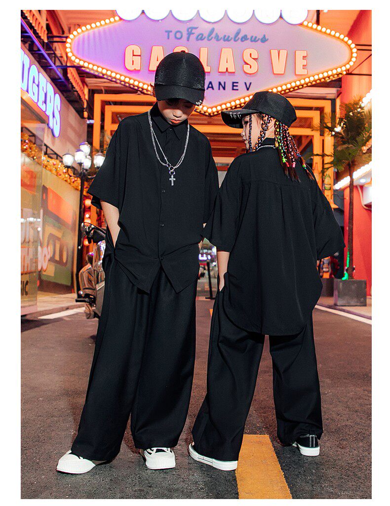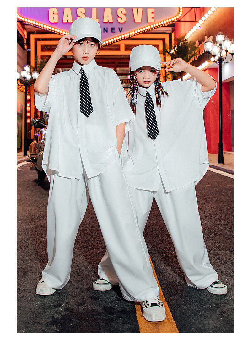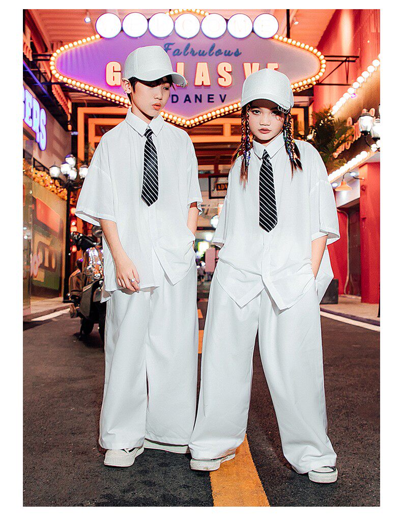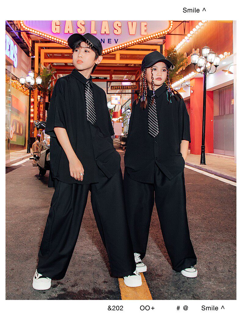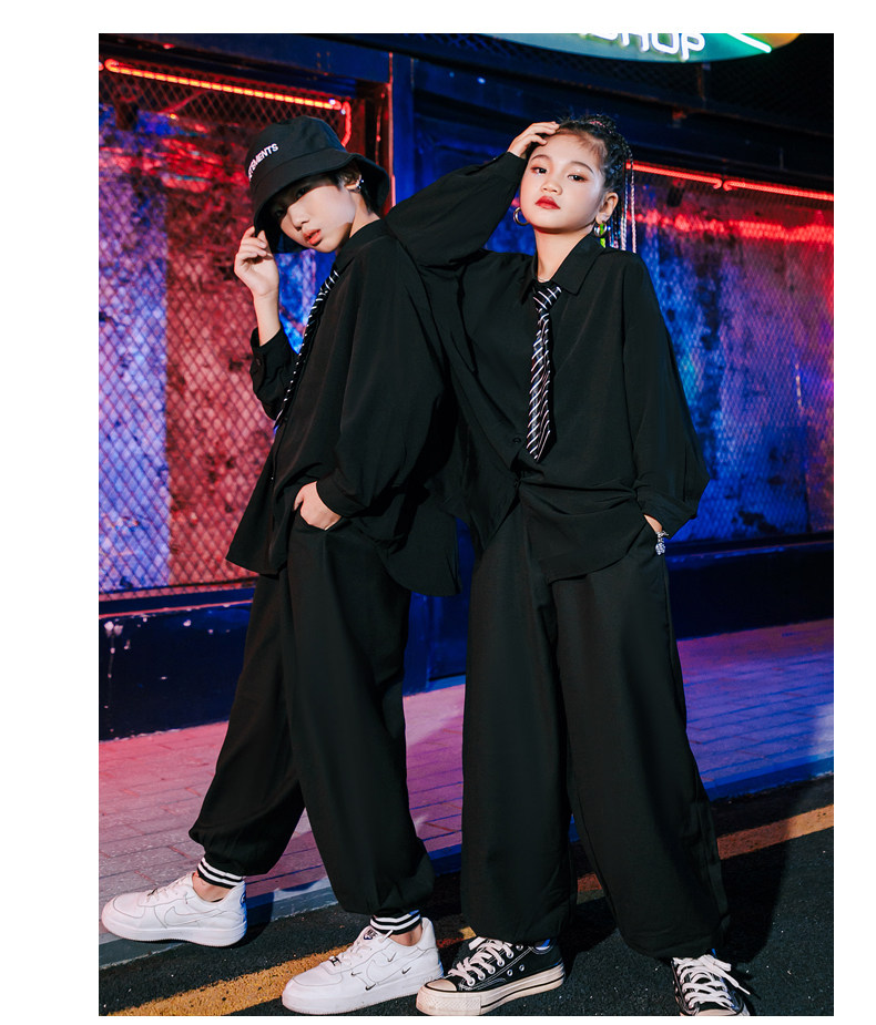 女童爵士舞表演服装儿童套装时髦衬衫 男童hiphop嘻哈街舞演出服